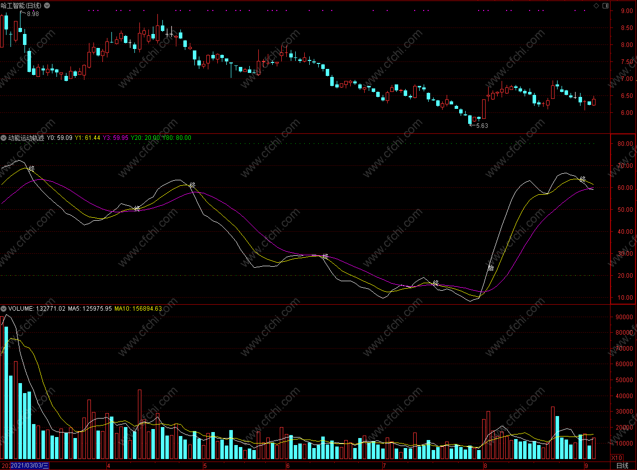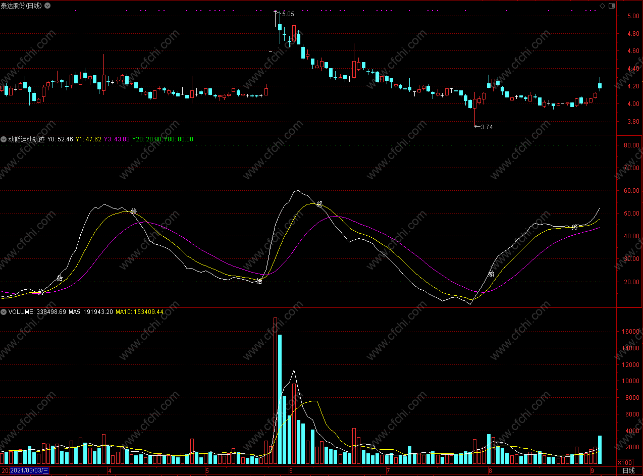 (底部金叉买入 通达信动能运行轨迹指标公式 副图 源码)