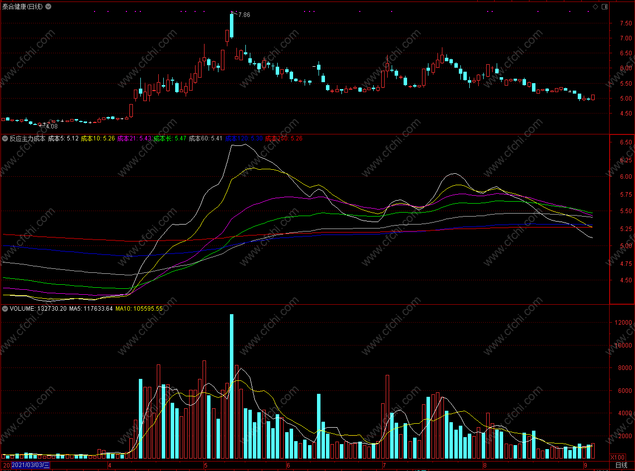 (【通达信免费源码】反应主力成本均线指标公式 副图 源码 贴图)