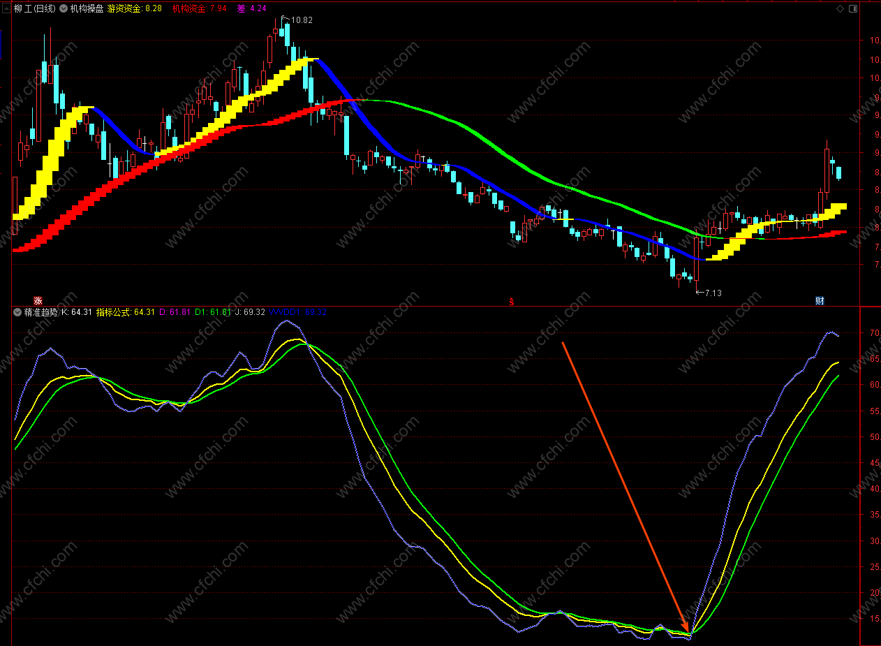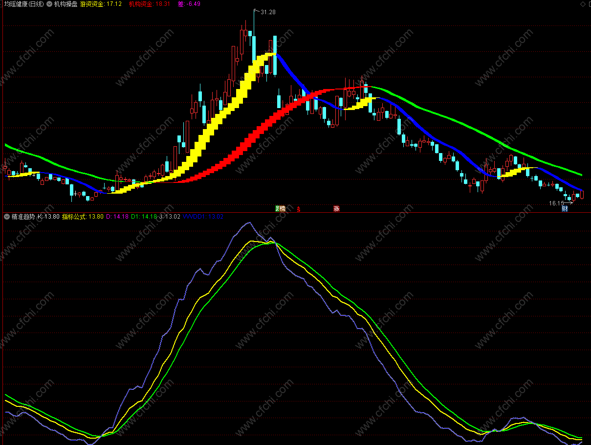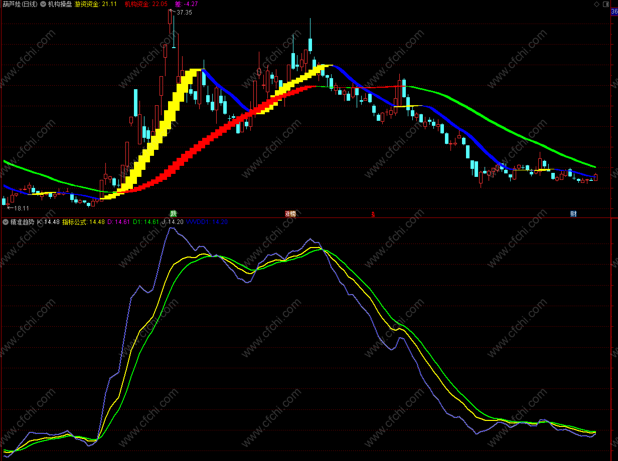 【精准趋势判断】适合强趋势股票,短中期持股个股趋势分析用。