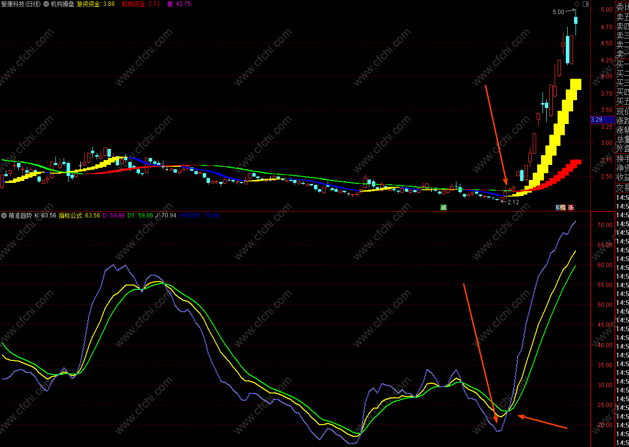 爱康科技:突然的底部强势拉升,在指标上形成大趋势,结合(主力资金指标,更加明显)