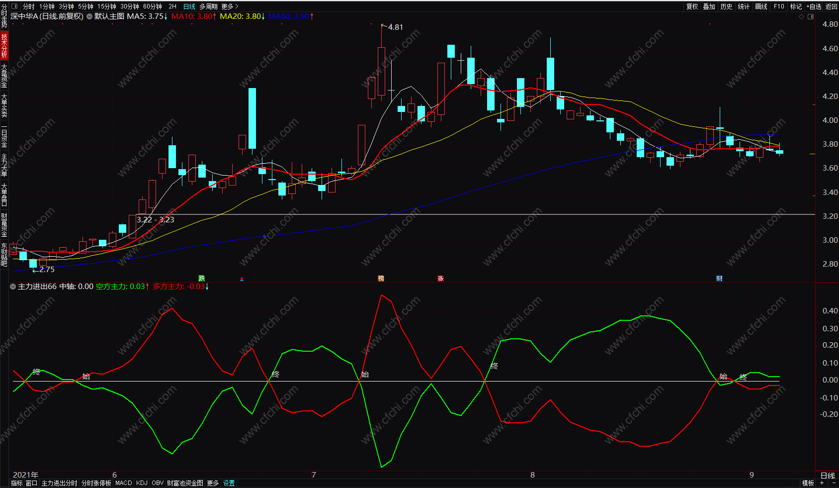 (主力进出66 短线主力资金指标公式 通达信指标公式副图 源码 贴图)