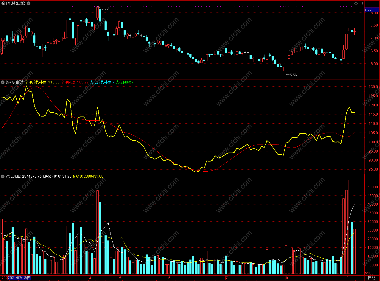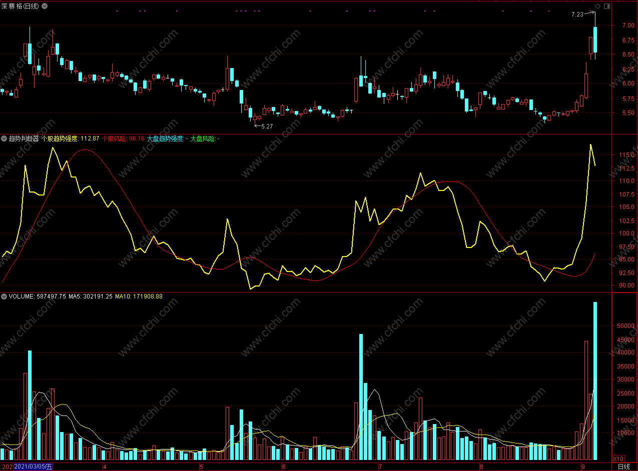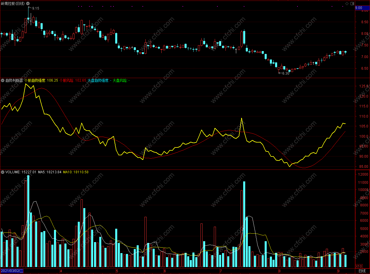 个股风险处于低位且大盘趋势强度抬头时买入反之卖出 通达信趋势判断器指标公式 副图 源码