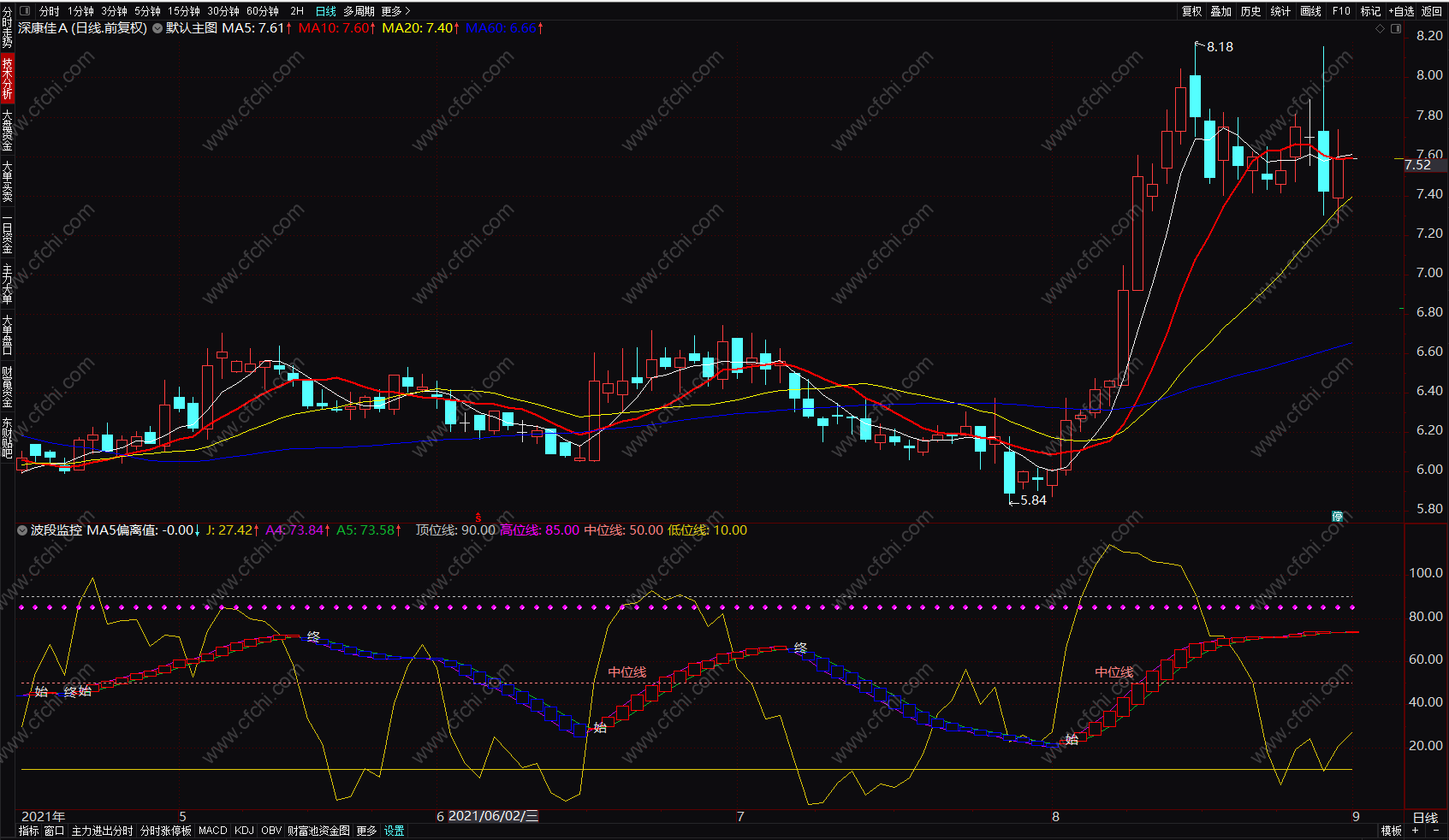 (波段监控 波段之星指标绝招 通达信指标公式副图 源码 贴图)
