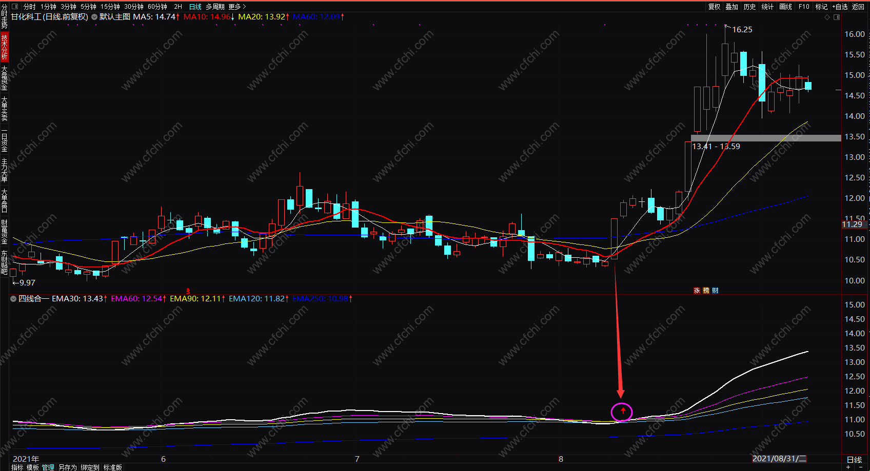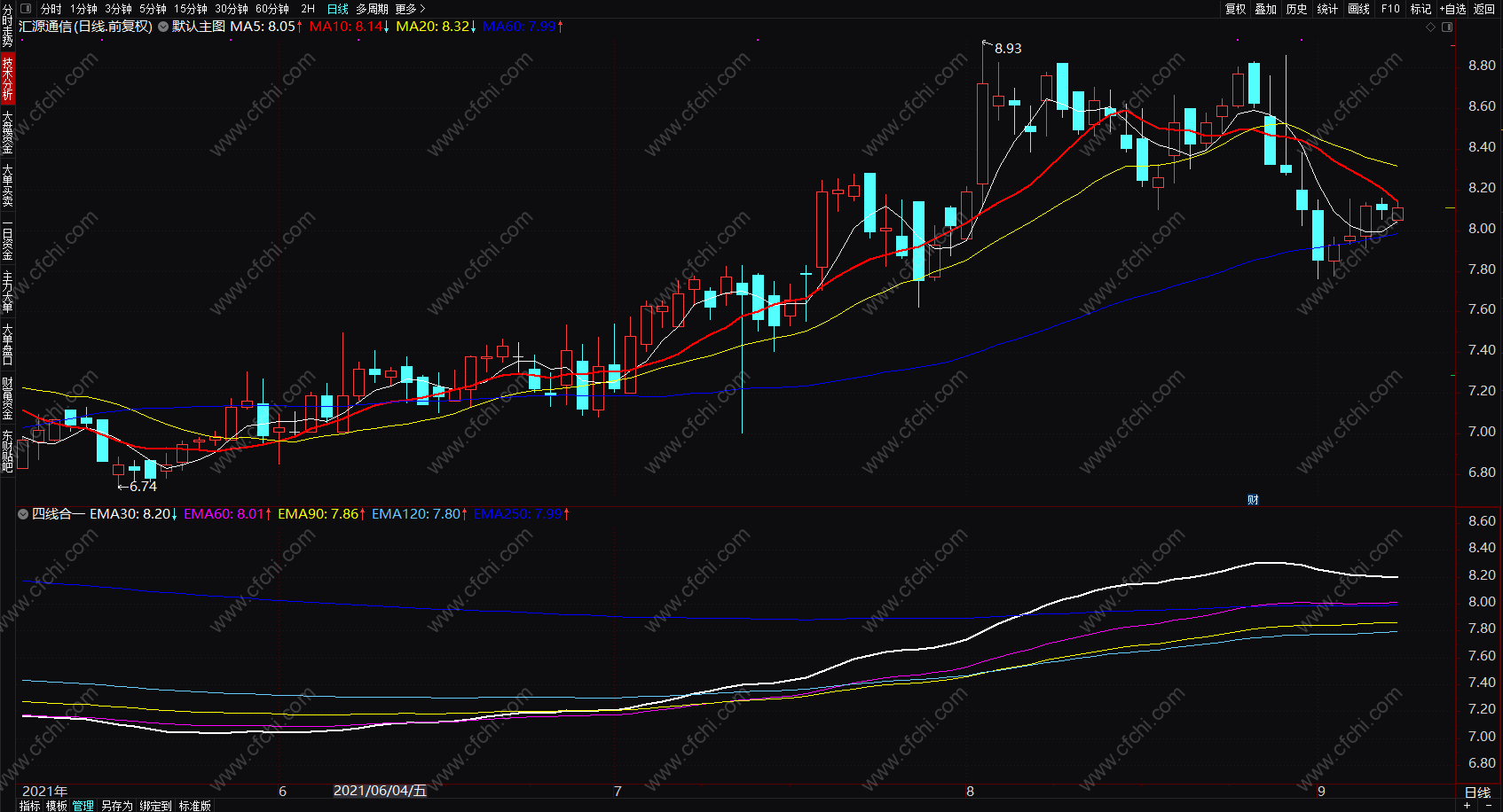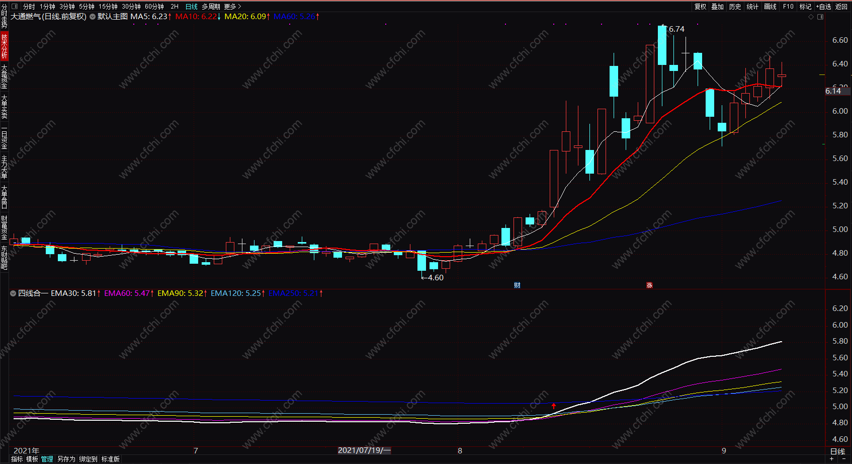 (短线黑马绝技 四线合一expma指标 通达信指标公式副图 源码 贴图)