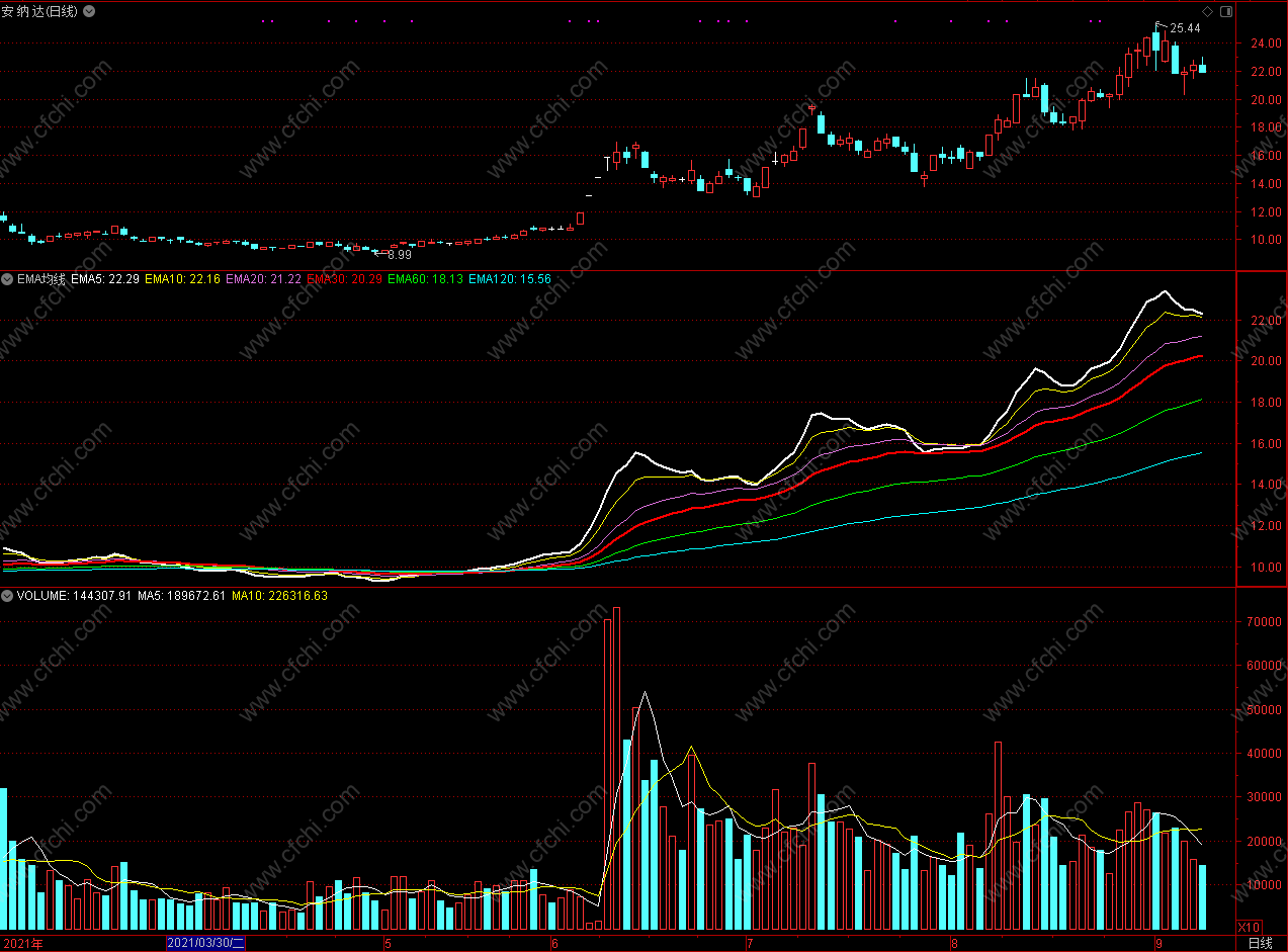 股价高于平均线视为强势低于为弱势 通达信EMA均线指标公式 副图 源码