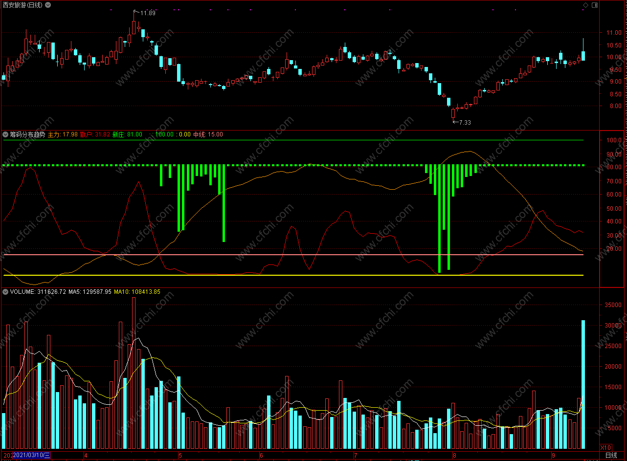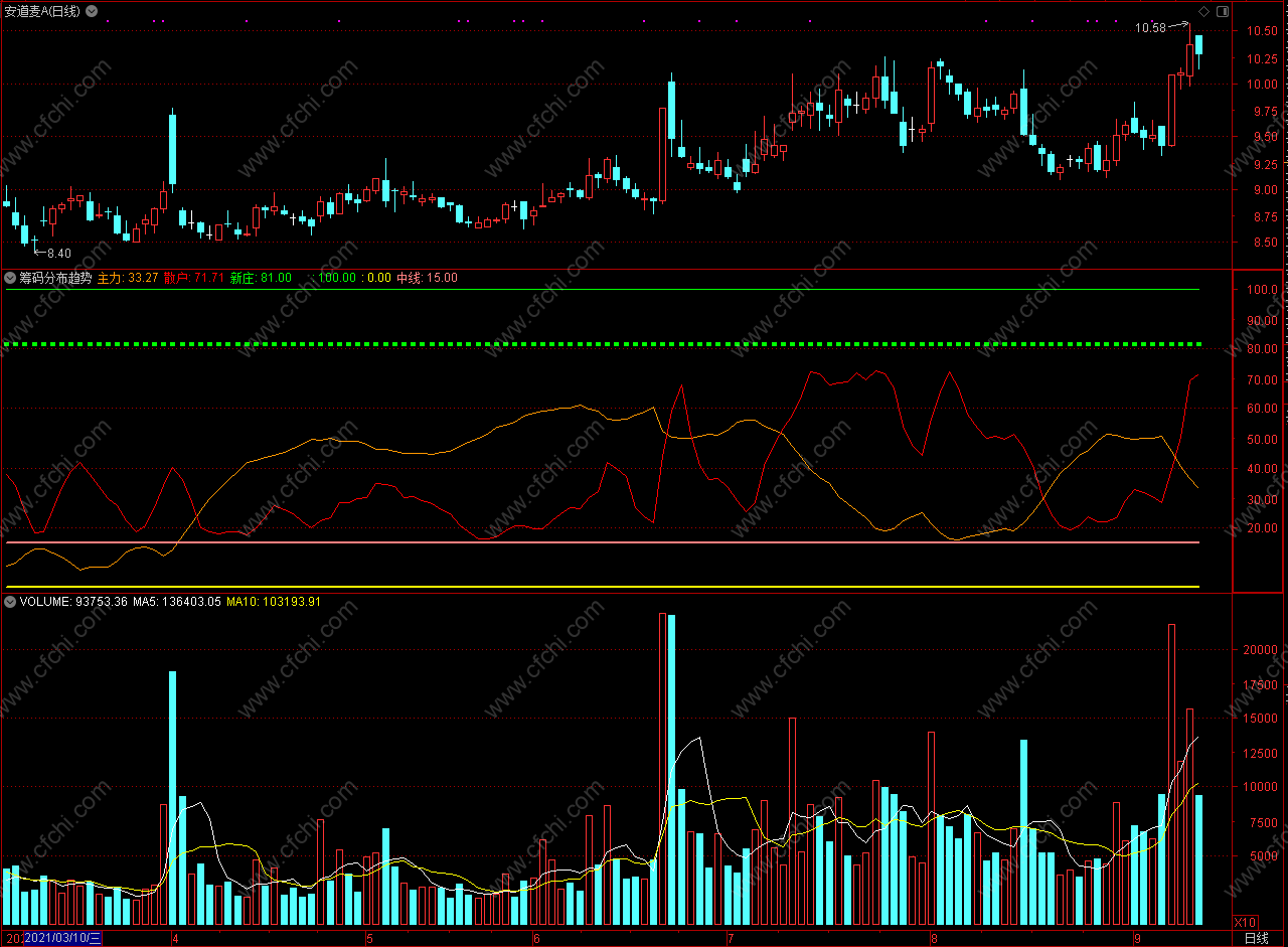 (【通达信免费源码】筹码分布趋势副图指标公式 源码 贴图)