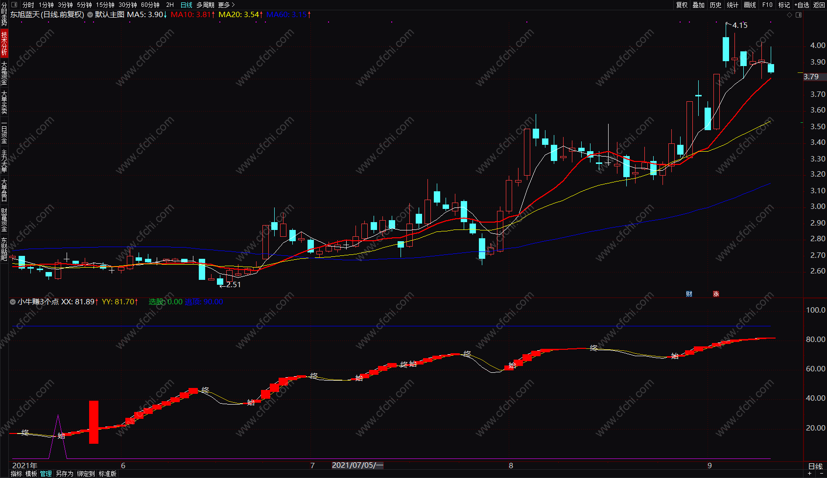小牛赚3个点 快进快出,百战百胜,天下无敌 通达信指标公式副图