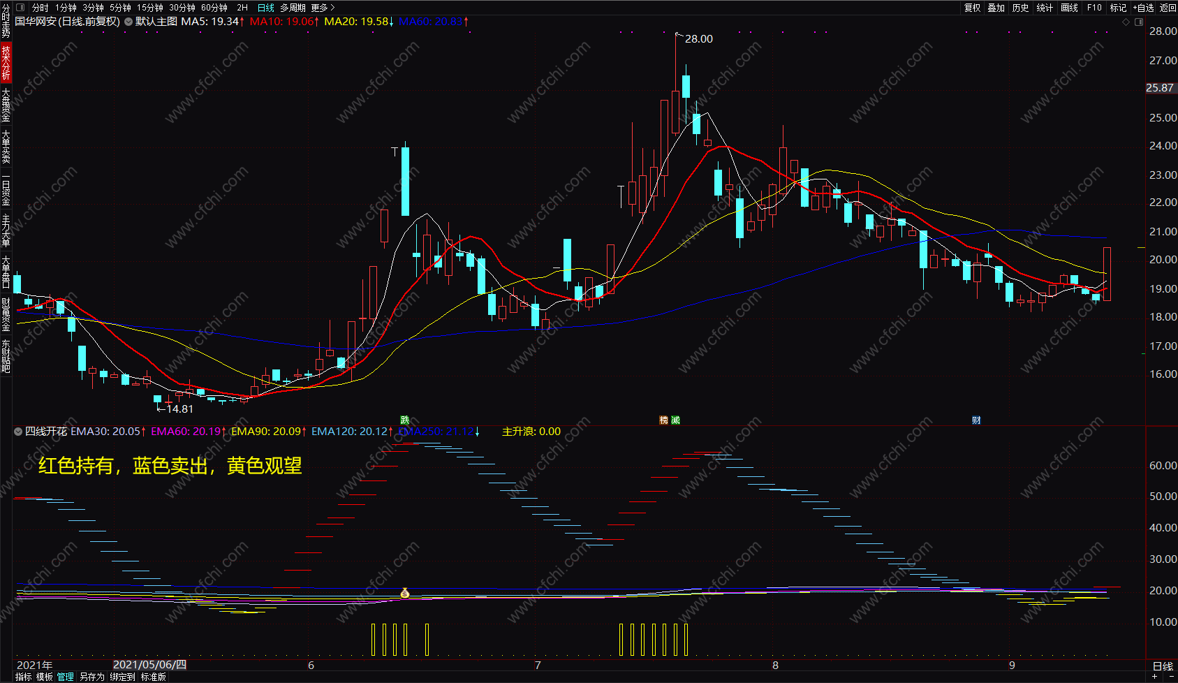 四线开花 颜色所代表的波段趋势指标 通达信公式副图 源码 贴图