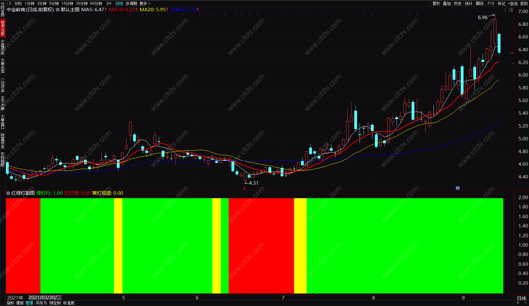 (通达信红绿灯副图 简单实用配合大盘、成交量的指标公式 源码 贴图)