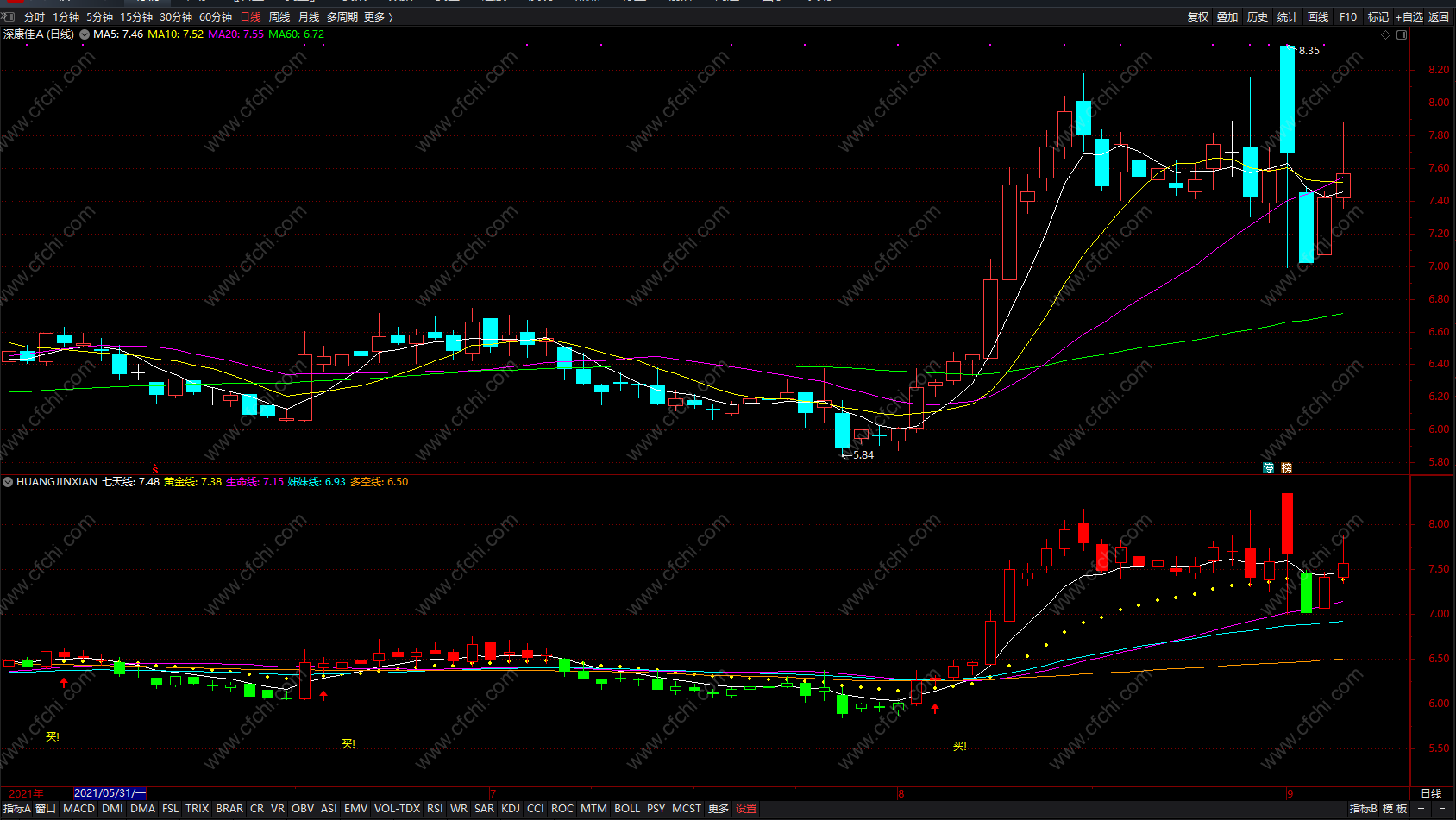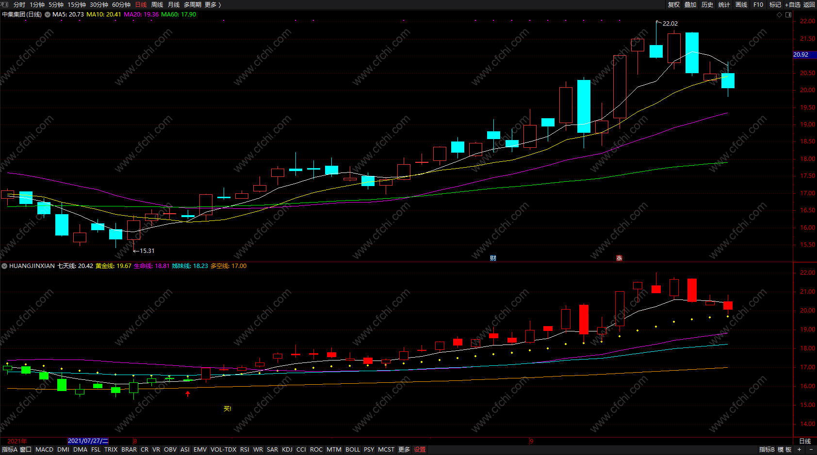 黄金线工作线:线上阴线买,买错也要买。线下阳线抛,抛错也要抛