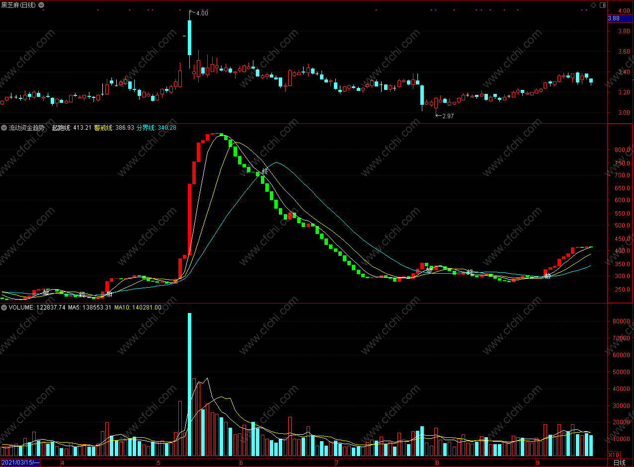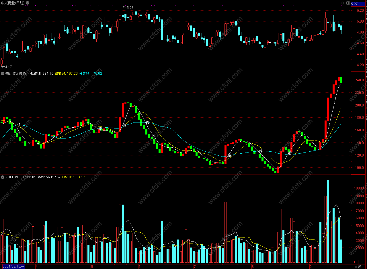(【通达信副图公式】流动资金趋势指标公式 无未来 源码)