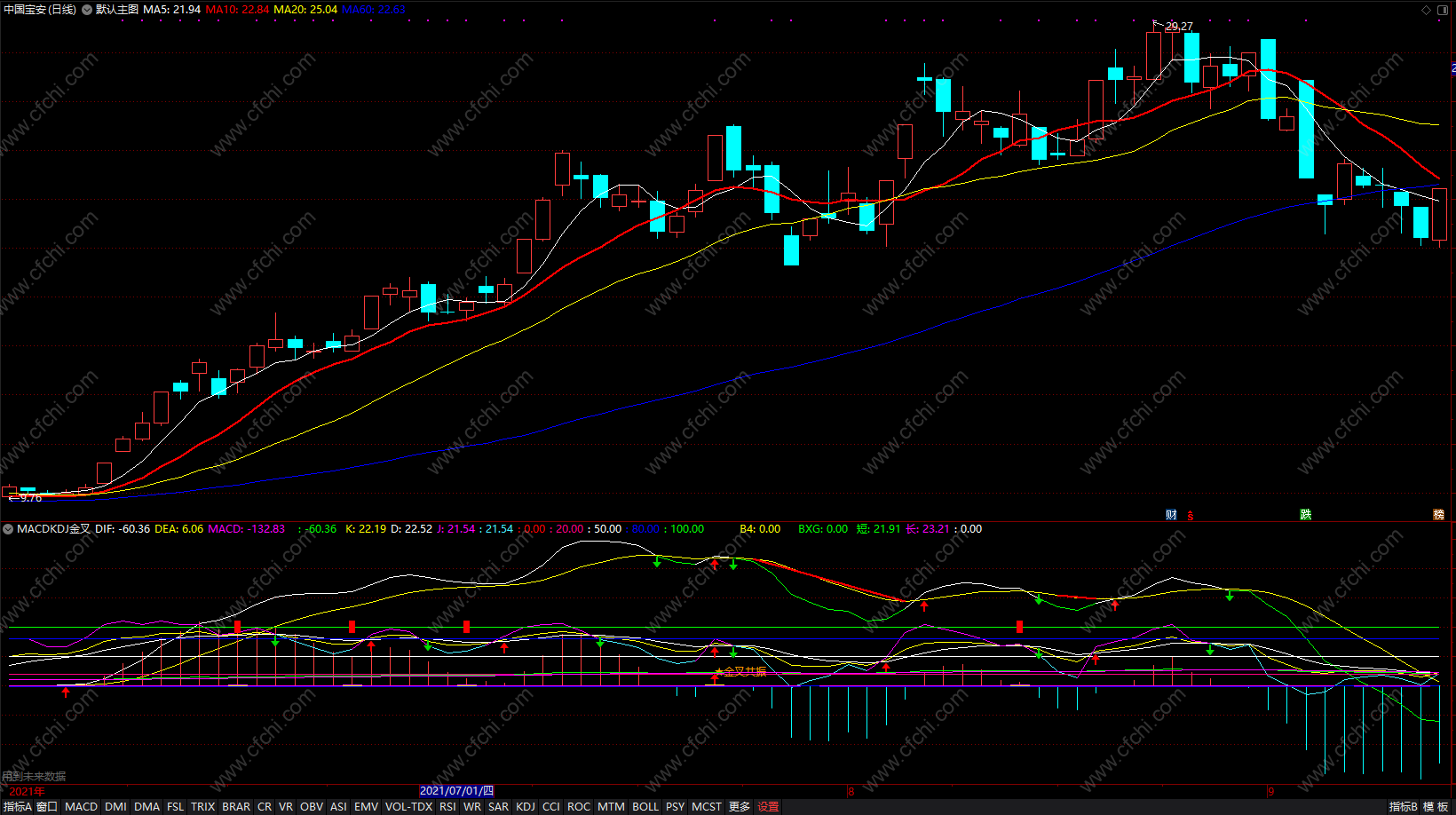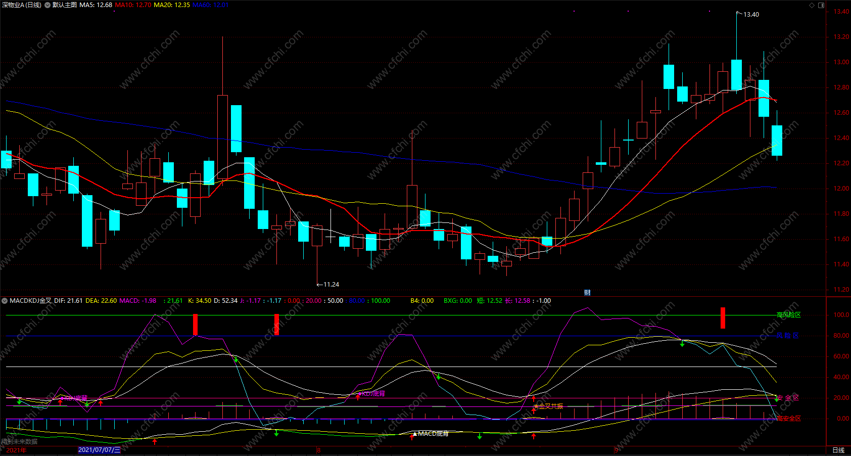 经典指标中最常用的是KDJ与MACD指标。KDJ指标是一种超前指标,运用上多以短线操作为主;而MACD又叫平滑异同移动平均线,是市场平均成本的离差值,一般反映中线的整体趋势。