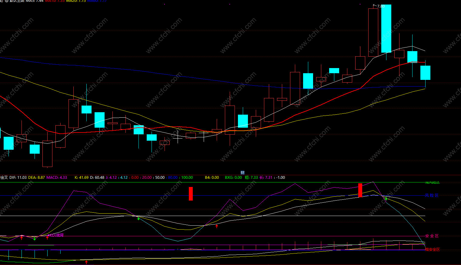 财富池指标公式网(www.cfchi.com)提醒您:指标公式是通过数学逻辑角度编写而来,仅是股票分析环节中的一个辅助工具,对股票选股效率和分析便捷上起到一定的作用,股市是具有不确定性和不可预测性的,请正常对待和使用指标公式!