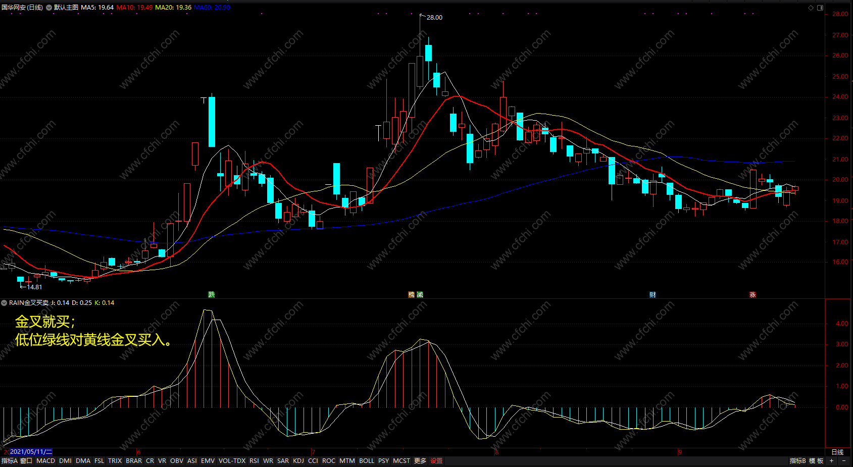 (RAIN金叉买卖 最基本的买入和逃顶指标 通达信指标公式副图 源码 贴图 )