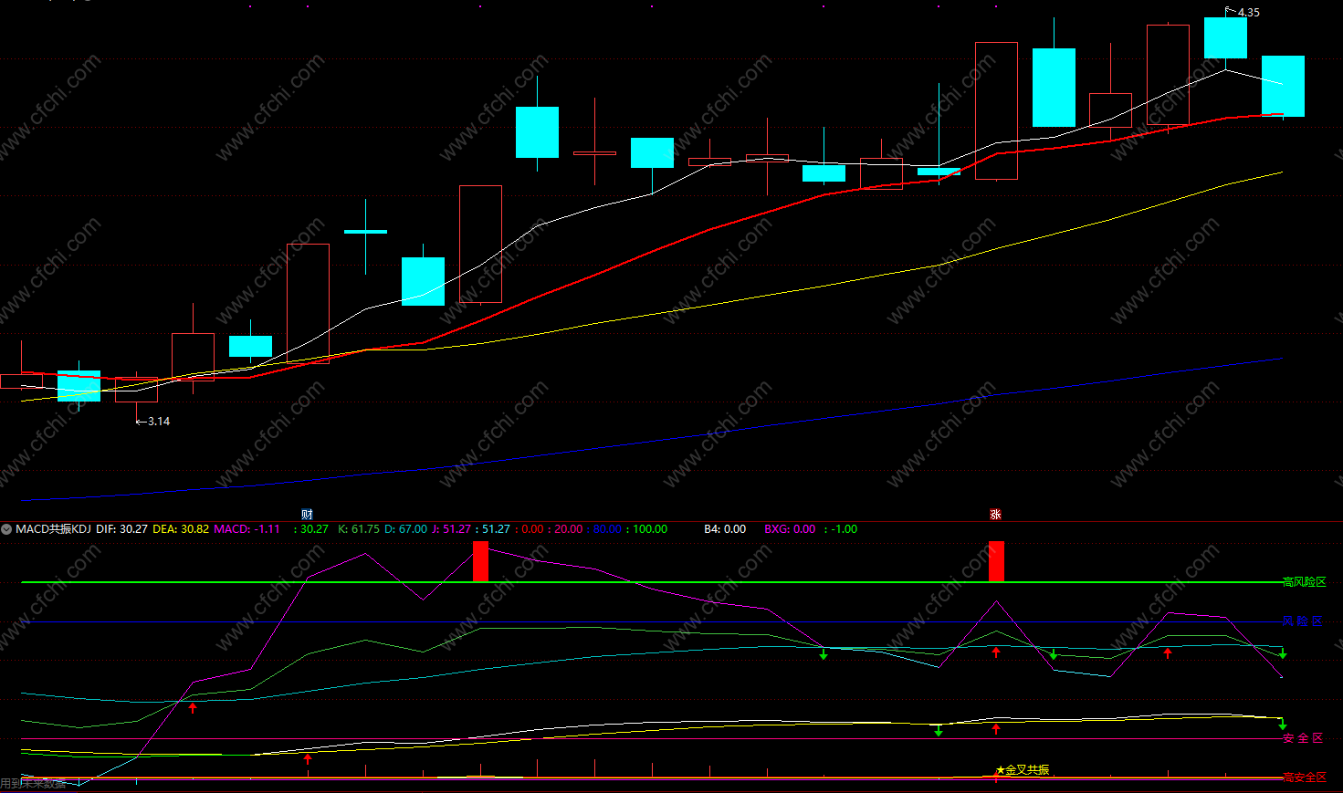 (MACD+KDJ共振指标 通达信公式副图 源码 贴图)