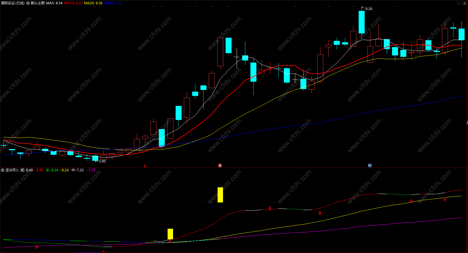 出现红色线段,黄色柱子”B"提示买点 白色线段预示着下跌趋势,绿色线段注意空仓!