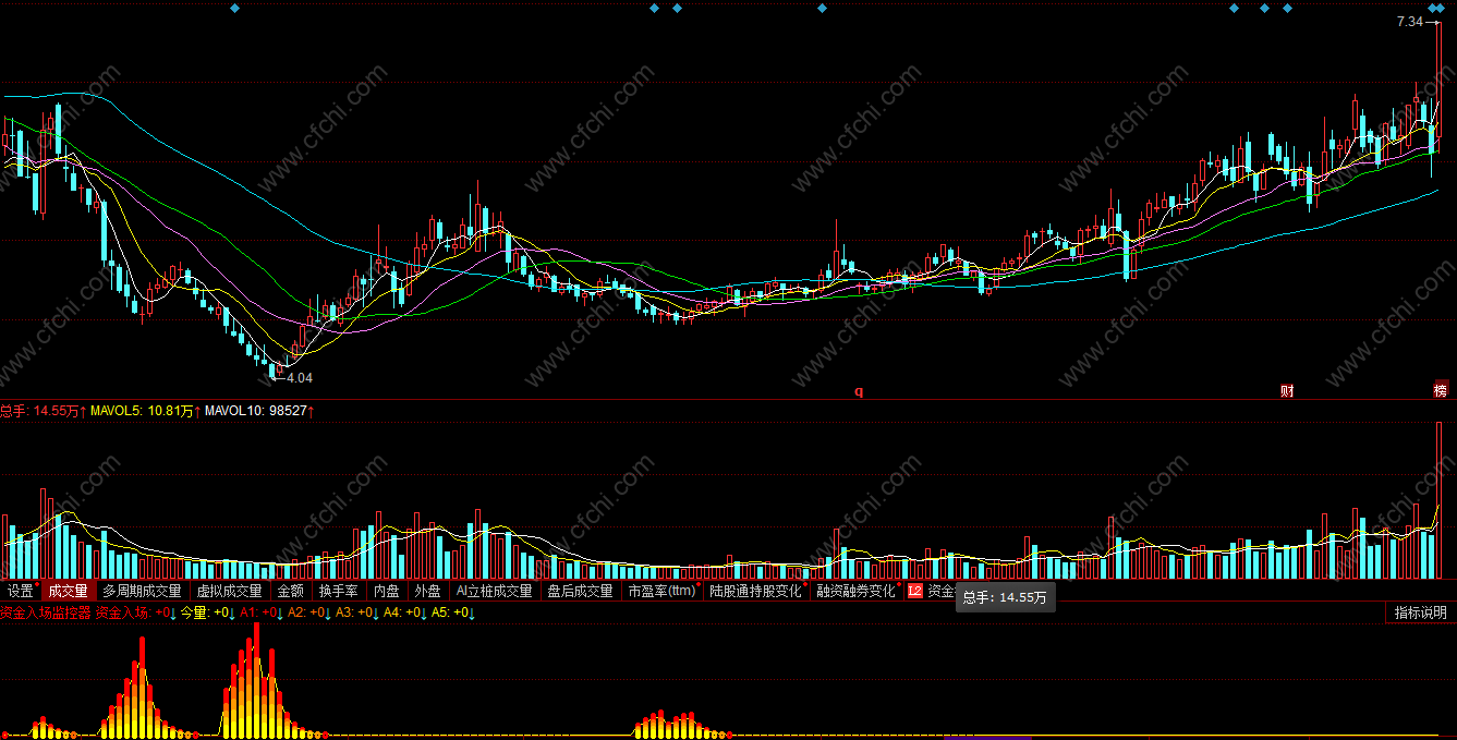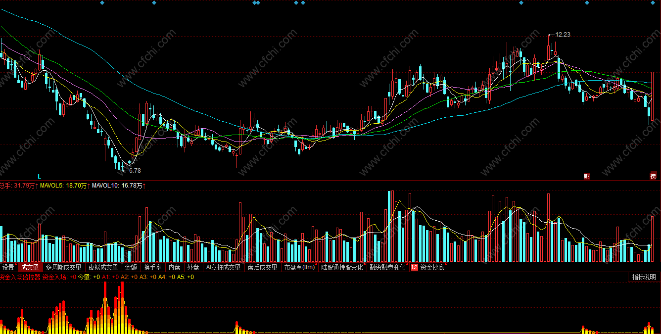(资金入场监控器同花顺指标公式副图 )