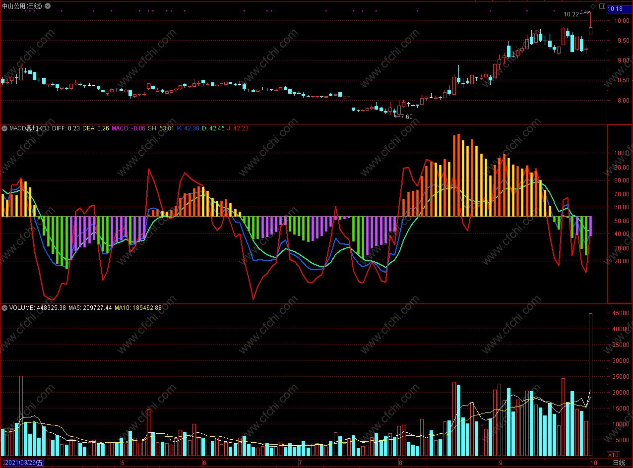 同一副图显示MACD、KDJ,叠加效果一目了然;同时帮助你节约界面空间。