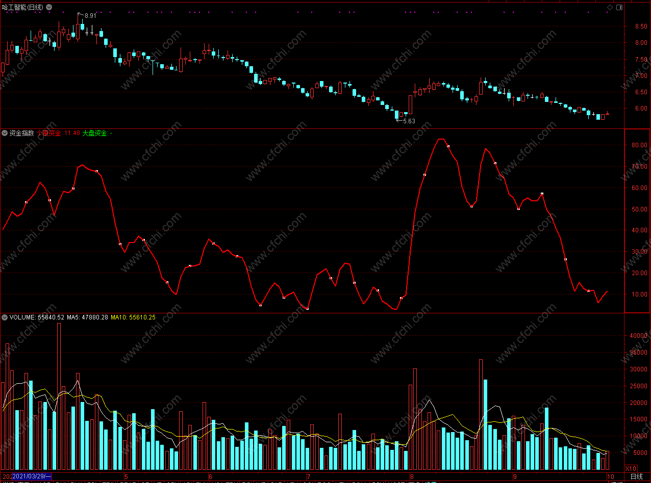 (【通达信免费源码】资金指数指标公式 副图 无未来 源码)