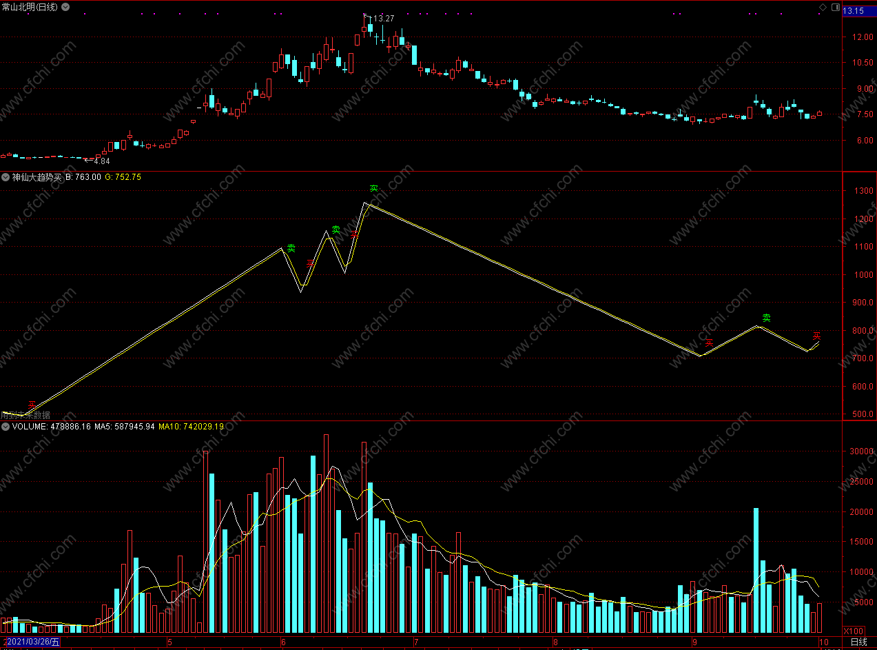 (通达信神仙大趋势买卖点1指标公式 副图 无未来 源码)
