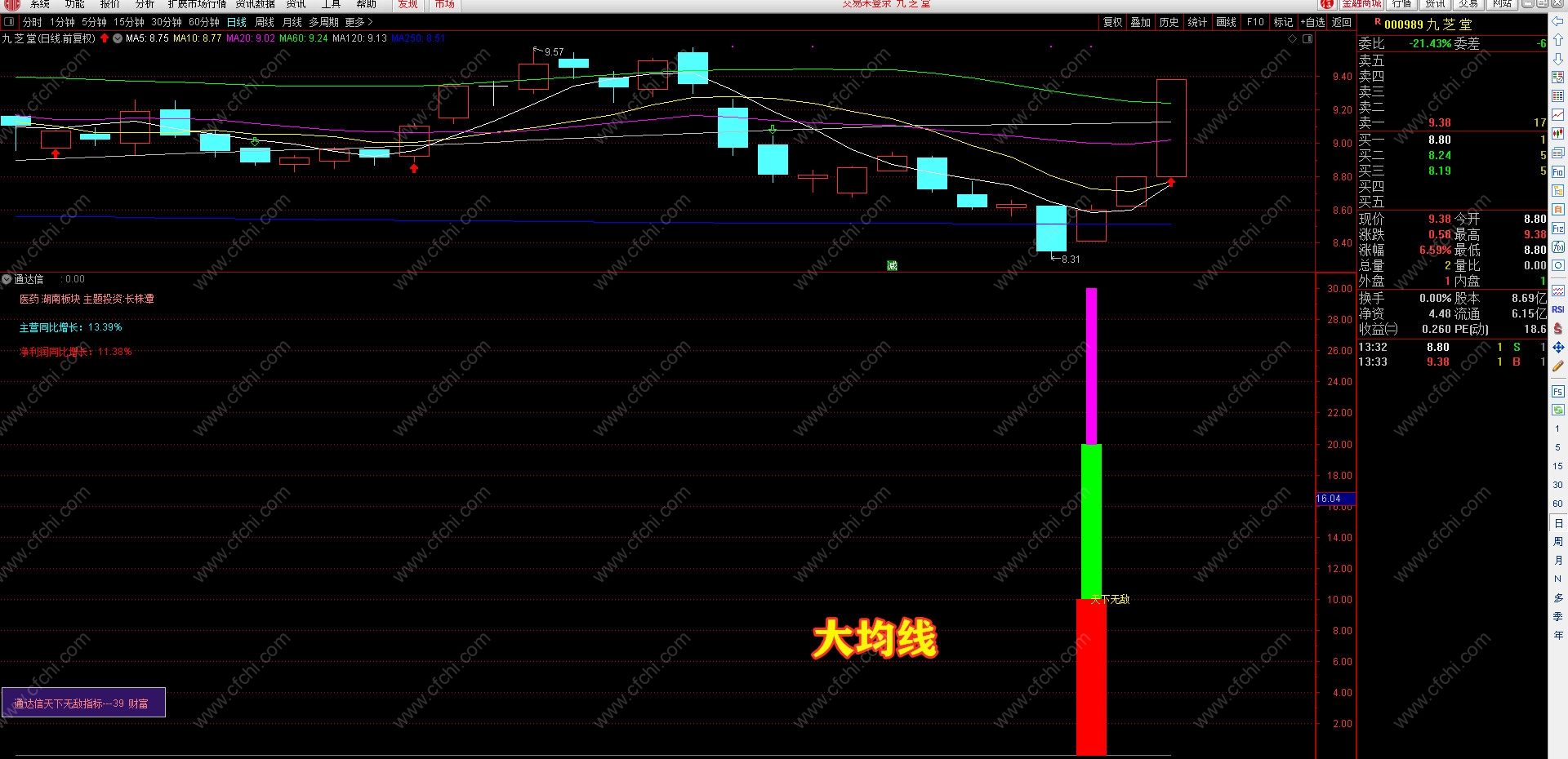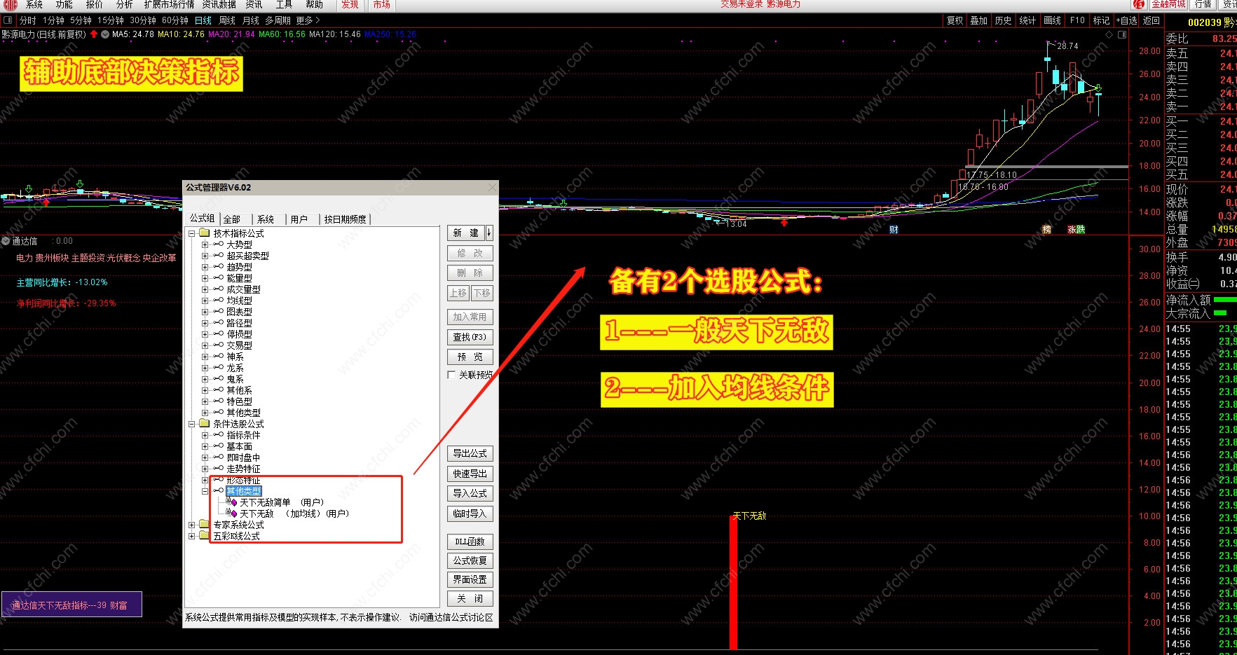 (通达信天下无敌指标公式 精选短线买点 精加均线原理选股 决策底部的辅助指标)
