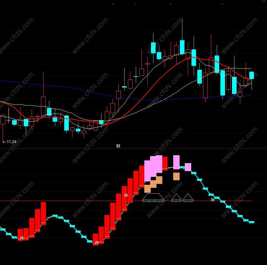 操作:EMA((VAR6-VAR7)/(VAR8-VAR7)*100,13)-50,LINETHICK0,COLORRED;