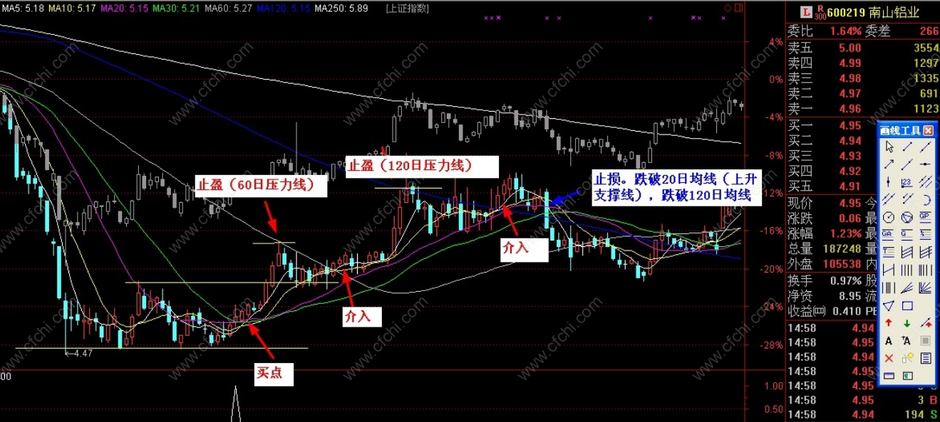 (3) 止盈:注意关键点位:最近高点、60日均线、120日均线、250日均线。
