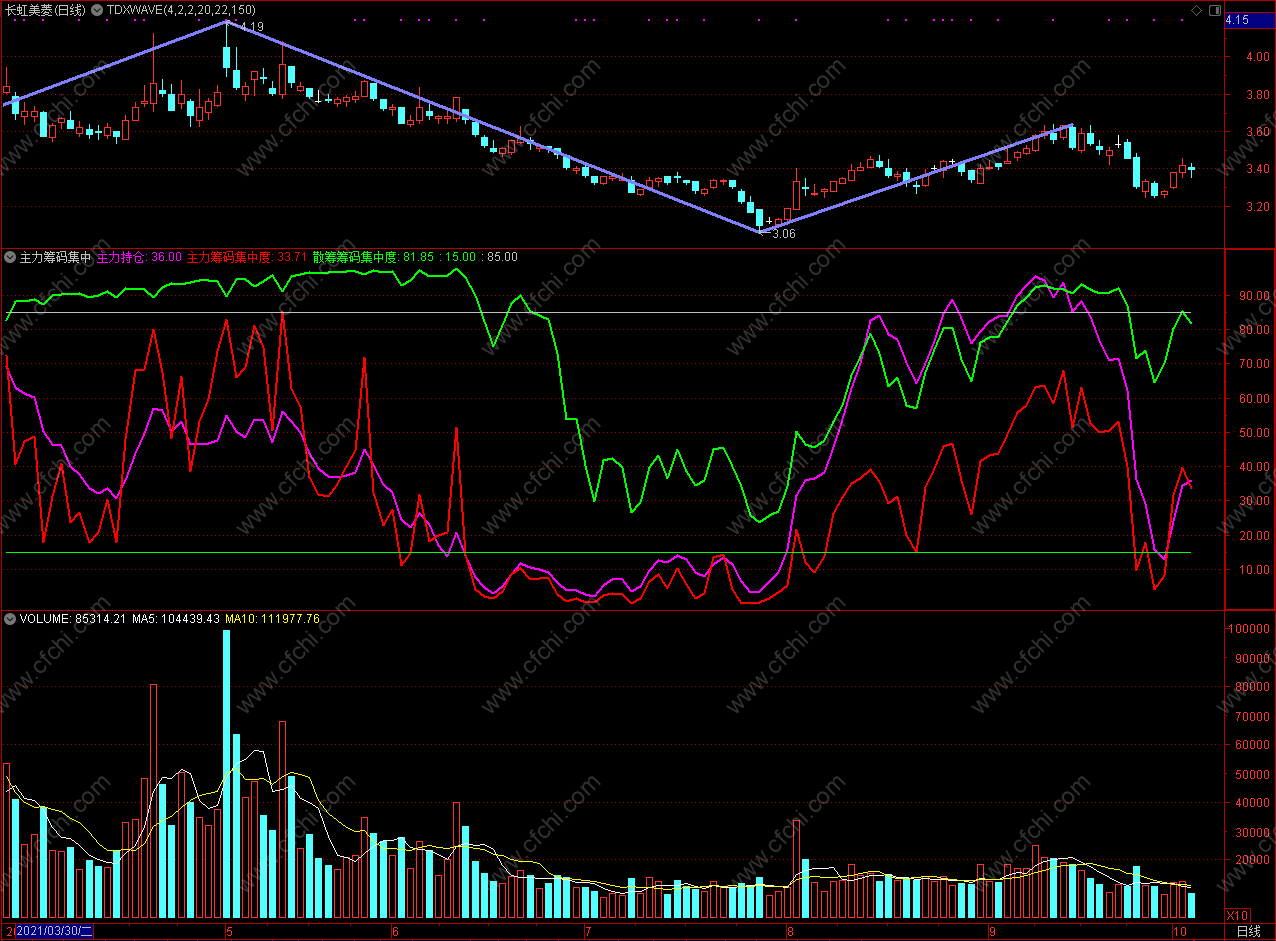 (【通达信免费源码】主力筹码集中度指标公式 副图 源码)