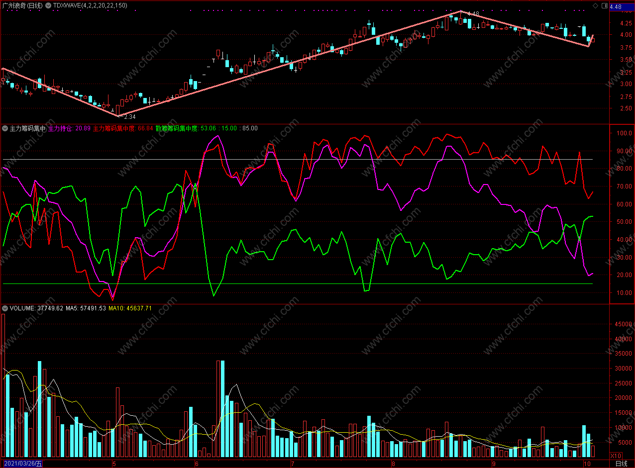 【通达信免费源码】主力筹码集中度指标公式 副图 源码