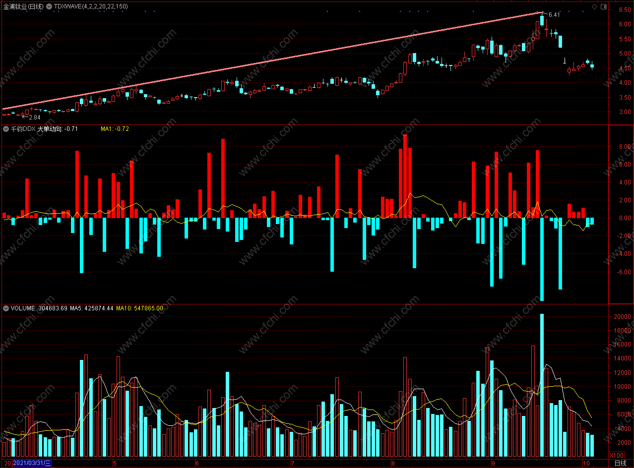 红柱资金流入绿柱流出 通达信千钧DDX指标公式 副图 源码
