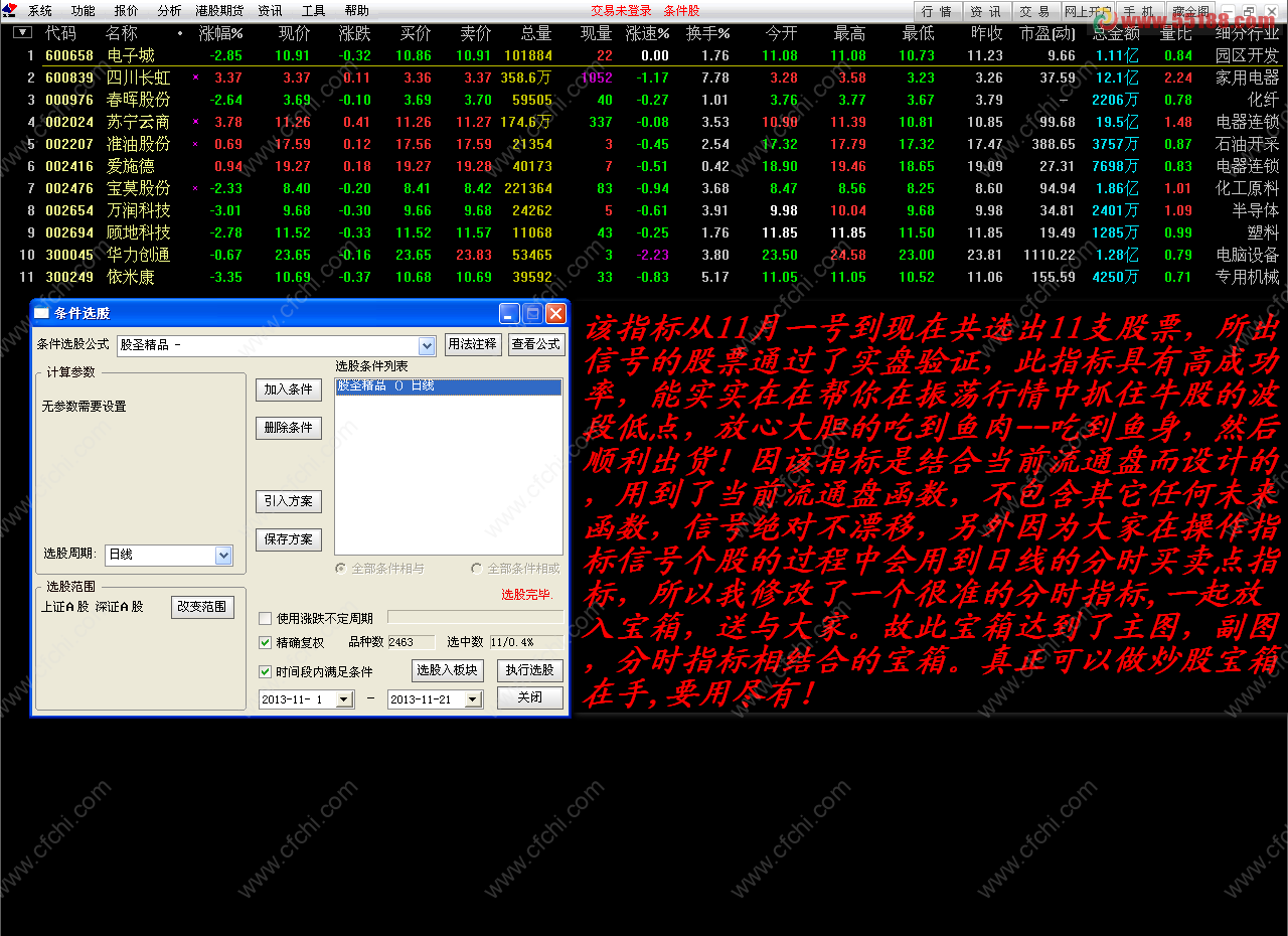郑重声明:股市具有不确定性,个股走势是无法预测的。公式软件描述中的案例截图仅代表过去,仅供参考学习研究之用,不构成投资建议或未来保证,也并不能代表未来,依此操作,责任自负。股市有风险,入市需谨慎。