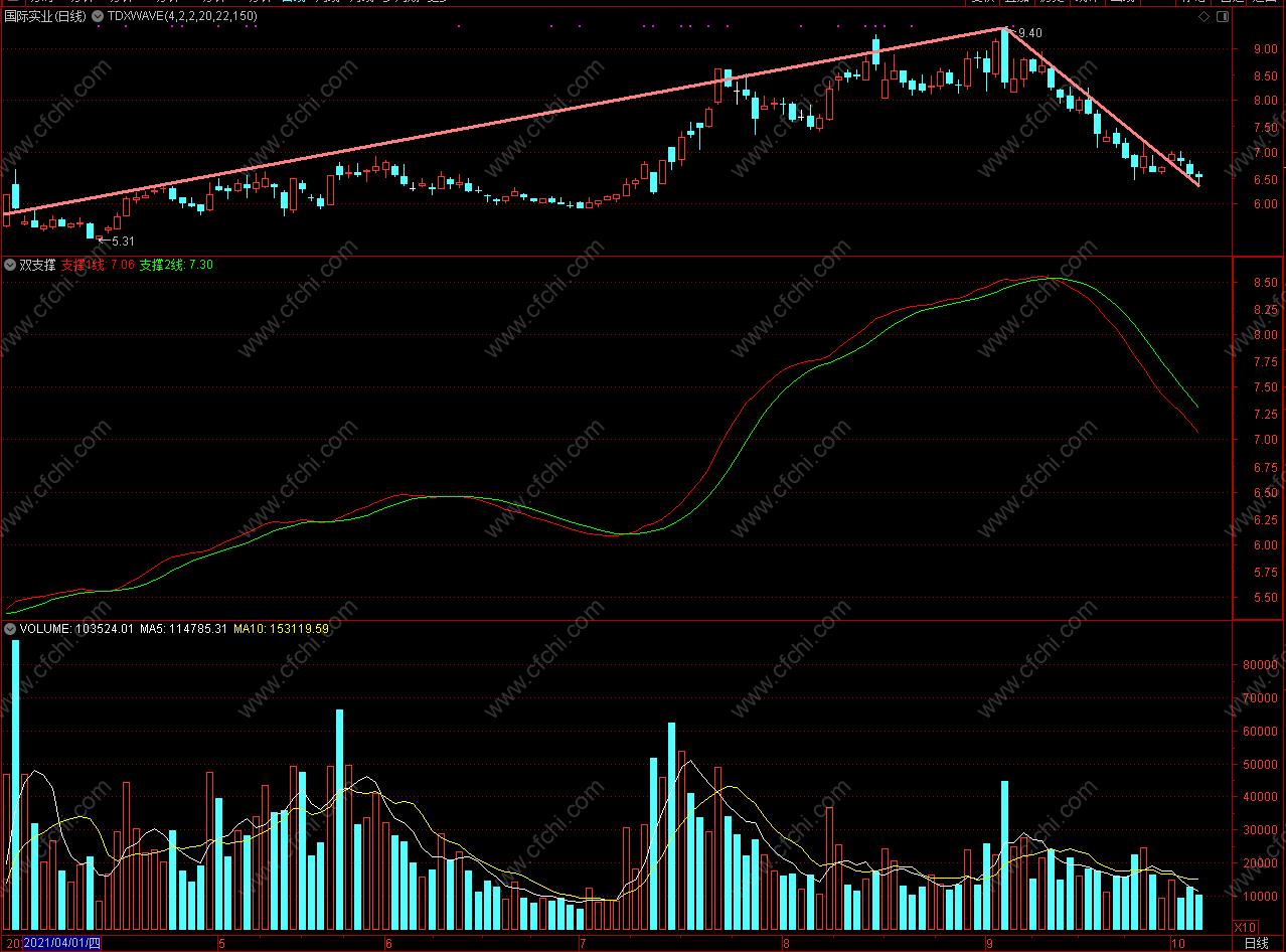 (红线绿线为支撑线 通达信双支撑指标公式 副图 源码 无未来)