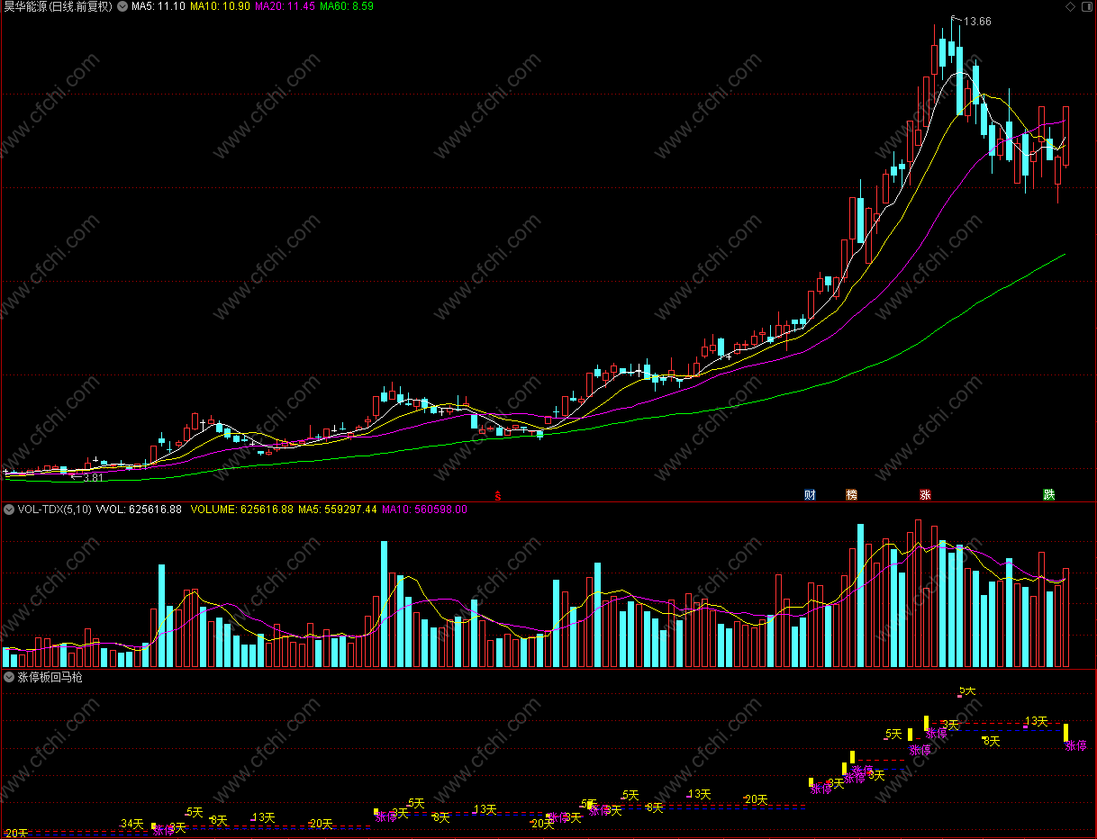 DRAWTEXT(VARZT=12,H*1.06,'13天'),COLORYELLOW;