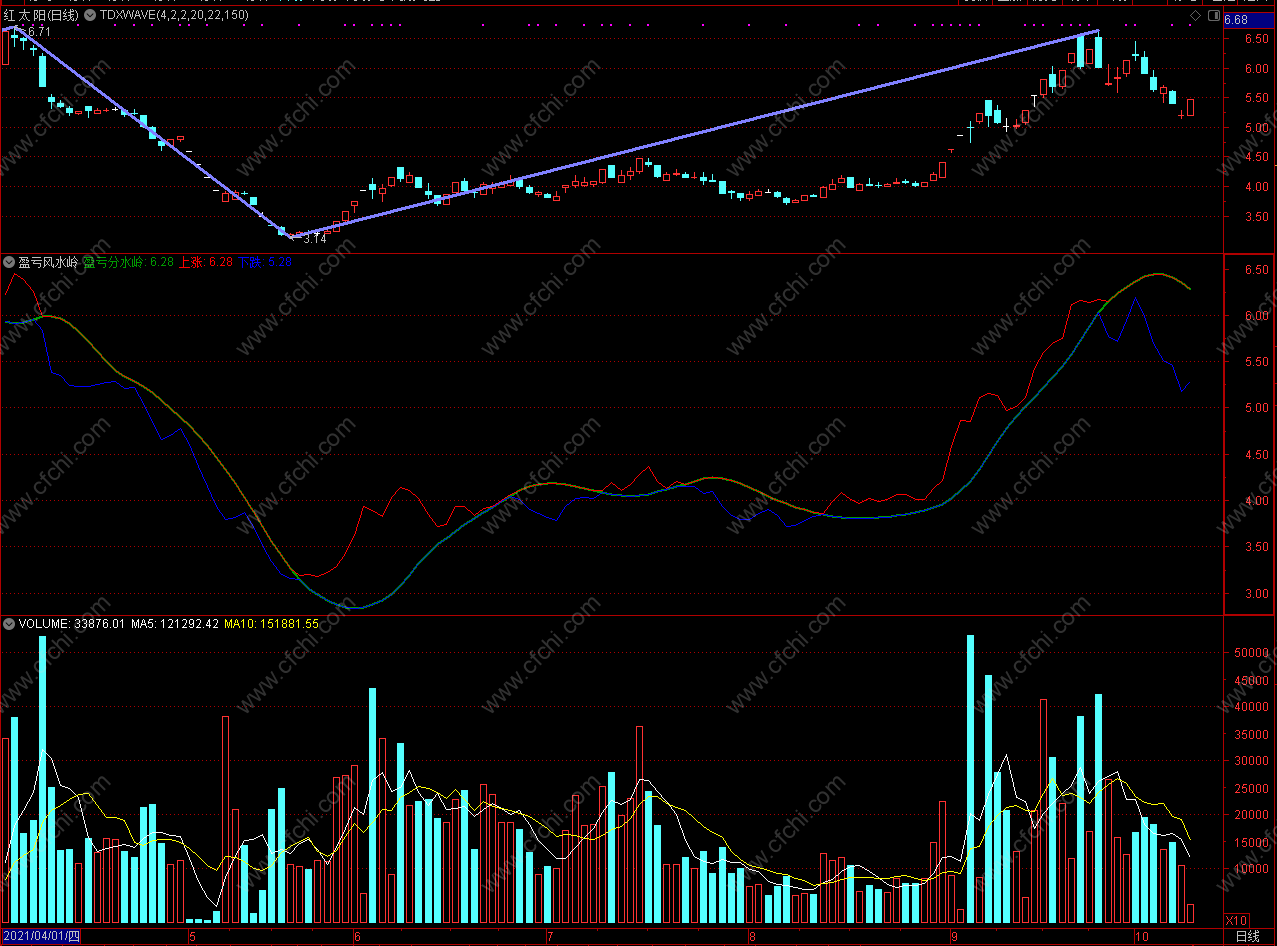 【通达信免费源码】盈亏风水岭指标公式 副图 无未来 源码