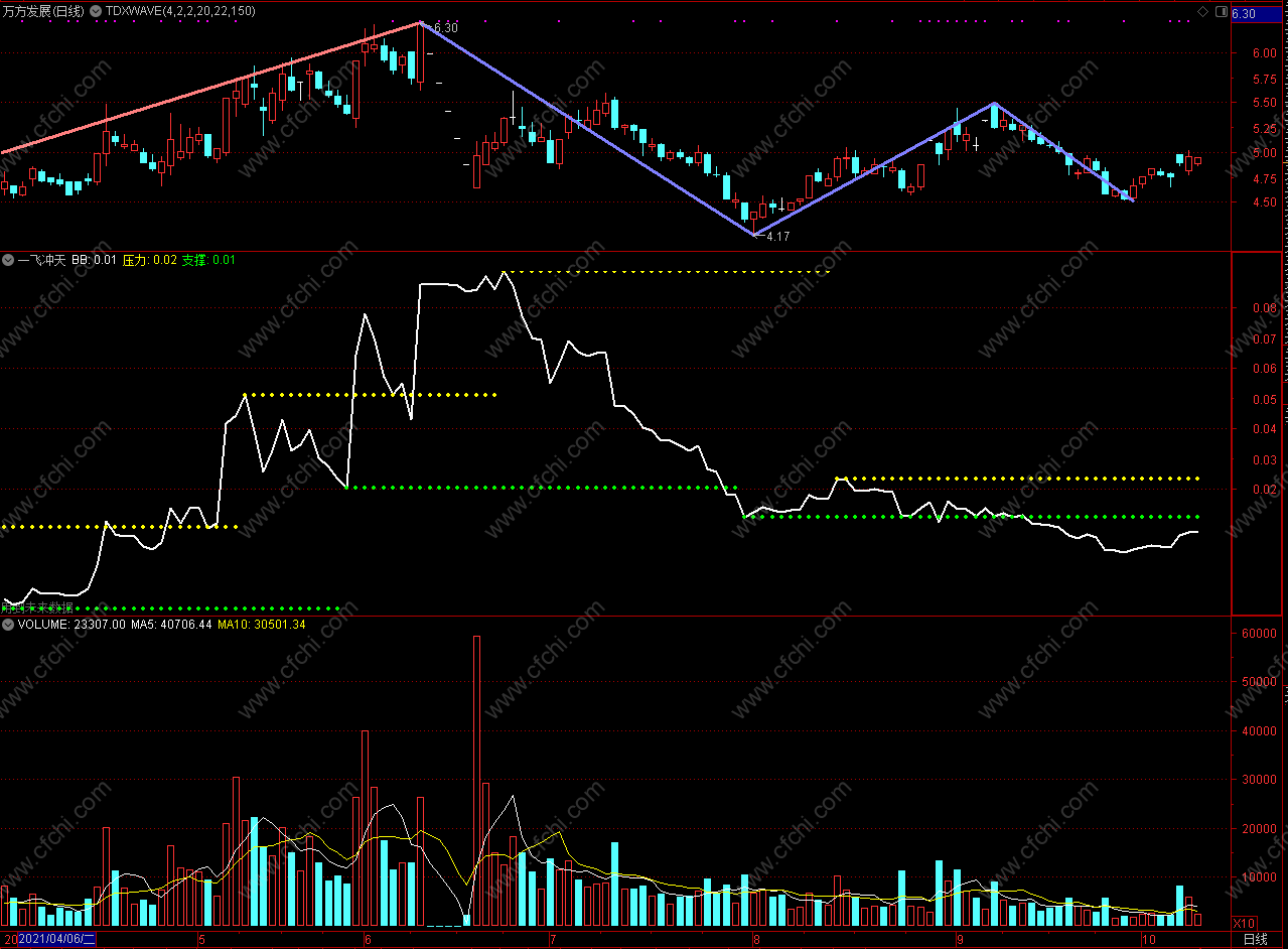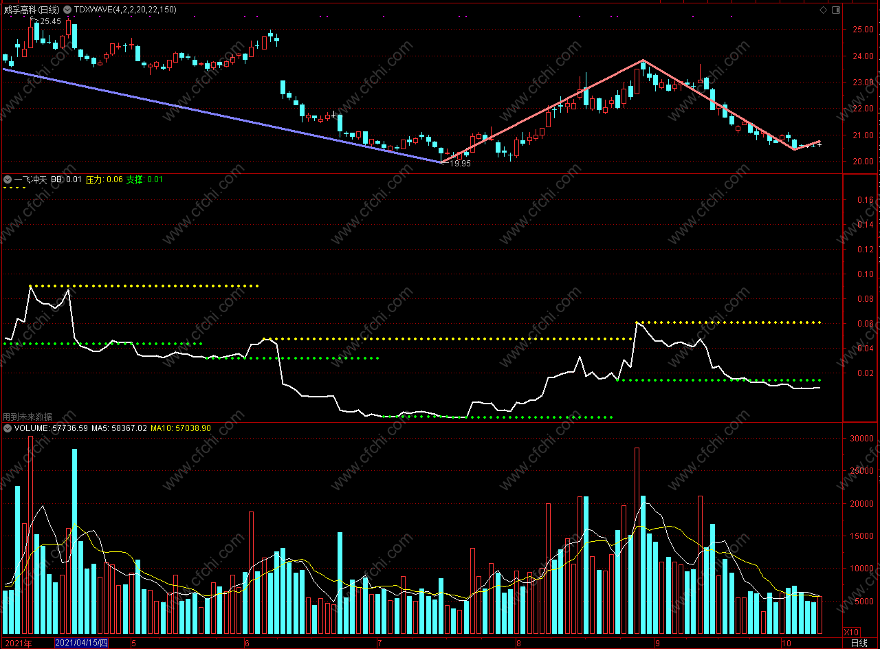 (突破平台指标 通达信一飞冲天指标公式 副图 源码)