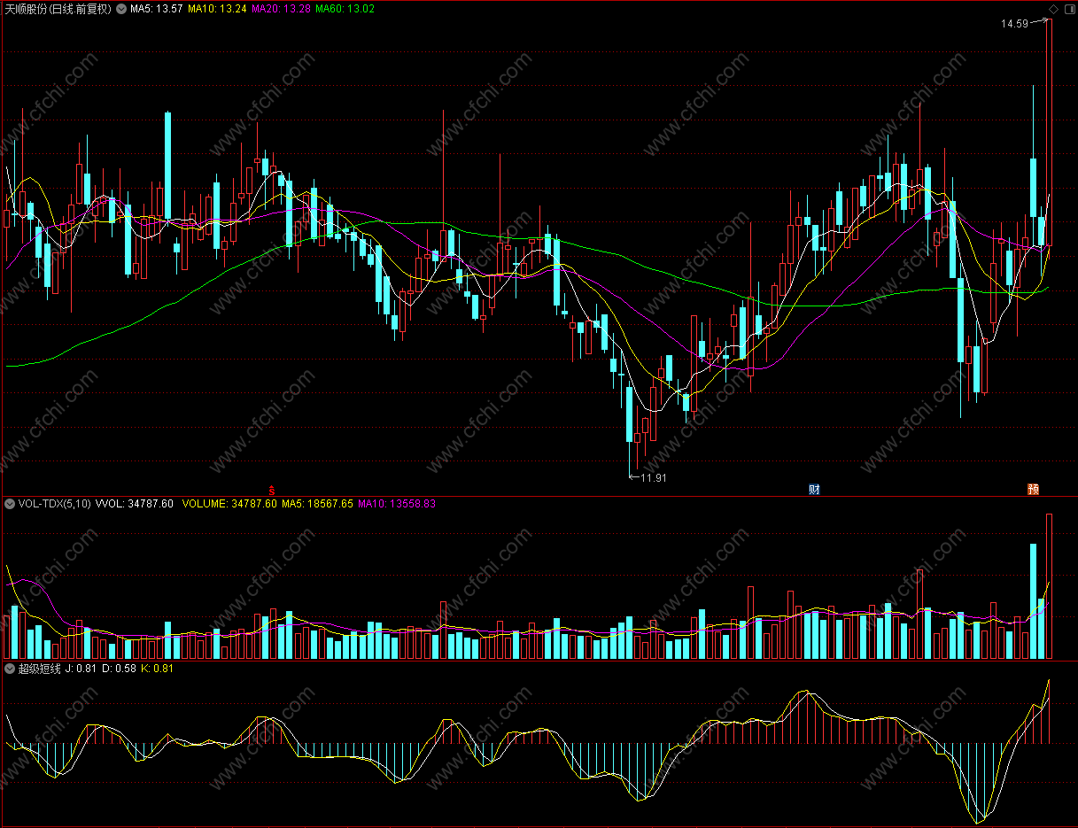 CJDX超级短线 通达信指标公式 副图 无未来