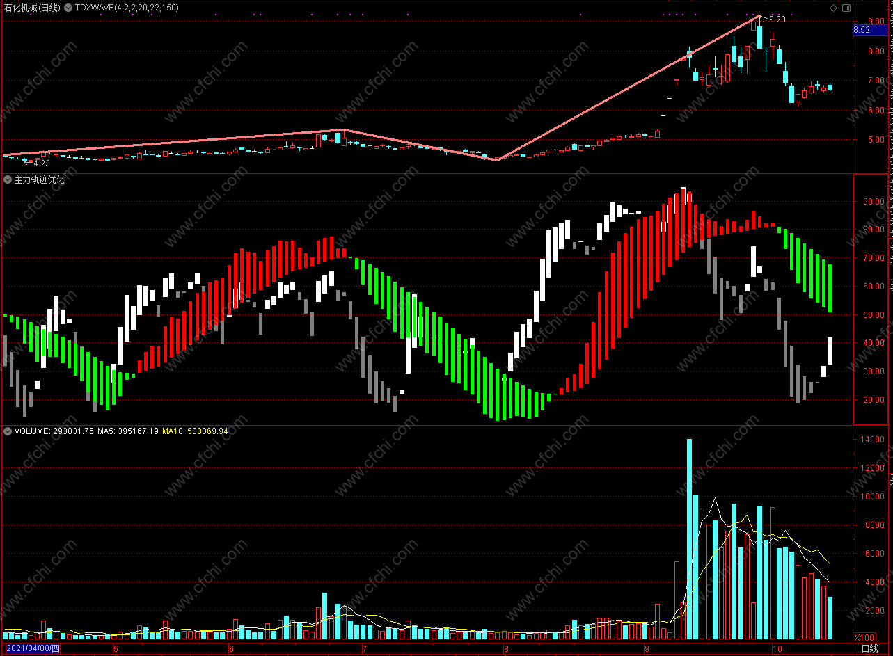 操盘轨迹同时交叉变色会暴涨暴跌 通达信主力轨迹优化指标公式 副图 无未来