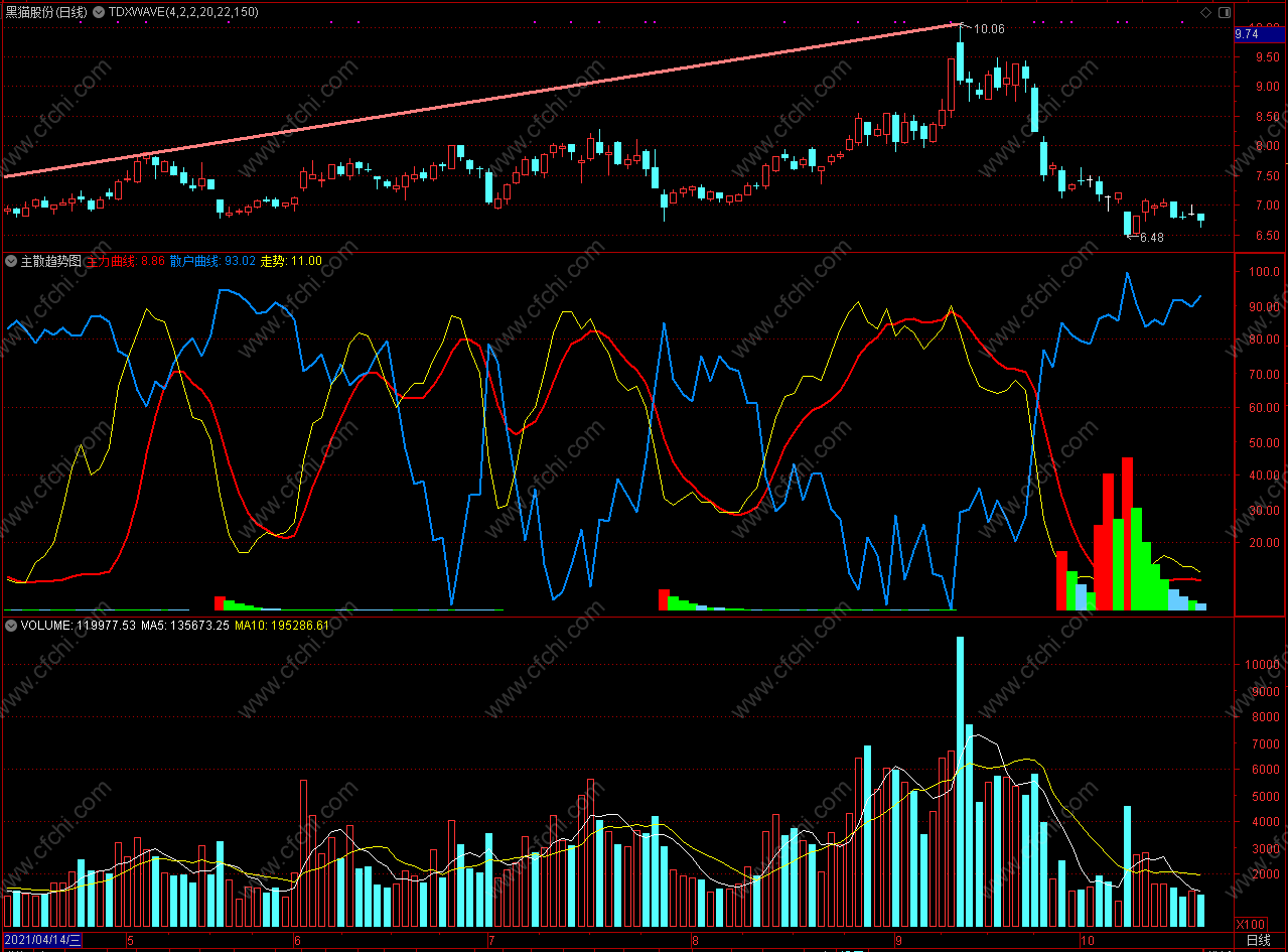 主力散户趋势 通达信主散趋势图指标公式 副图 无未来