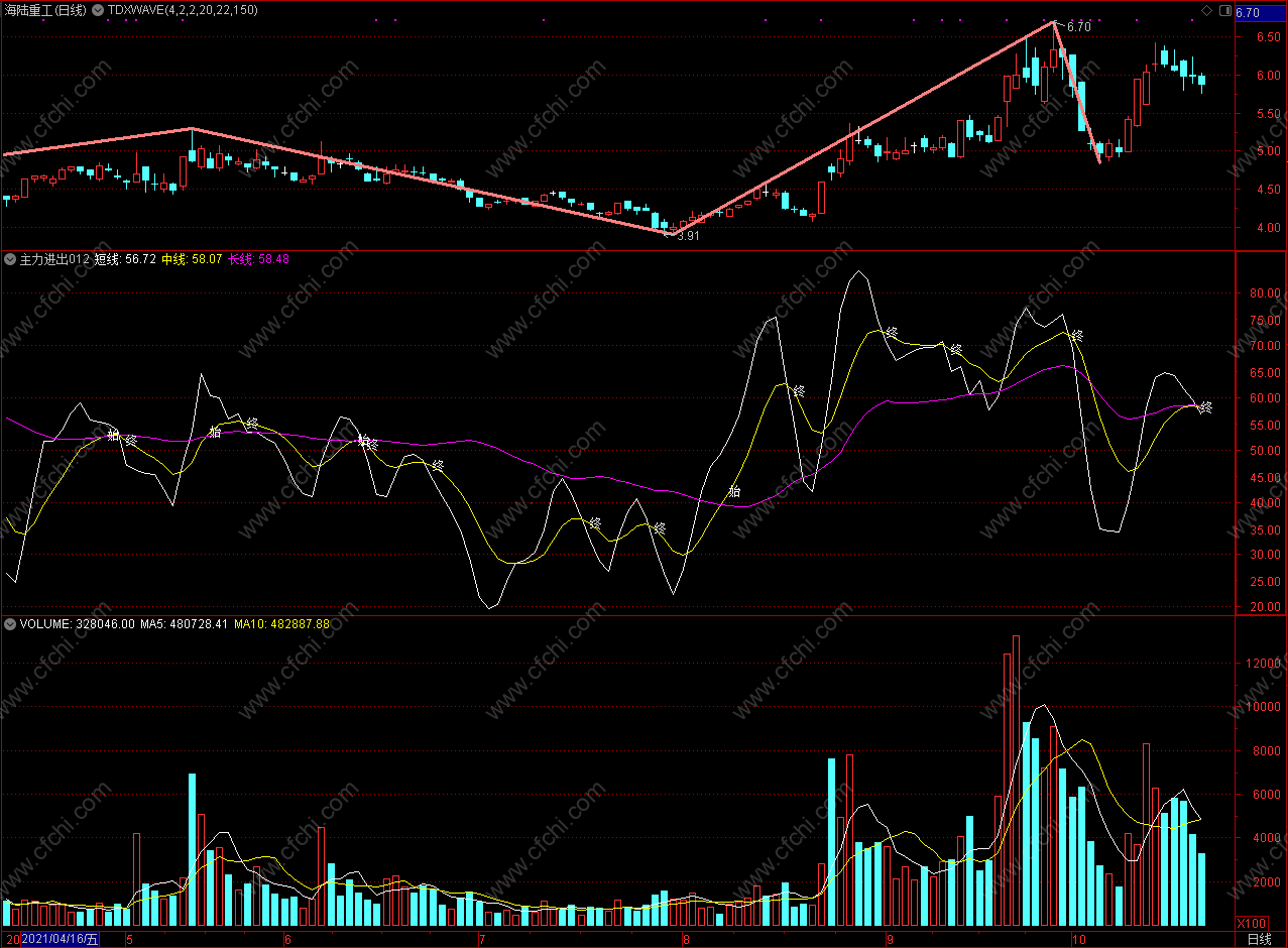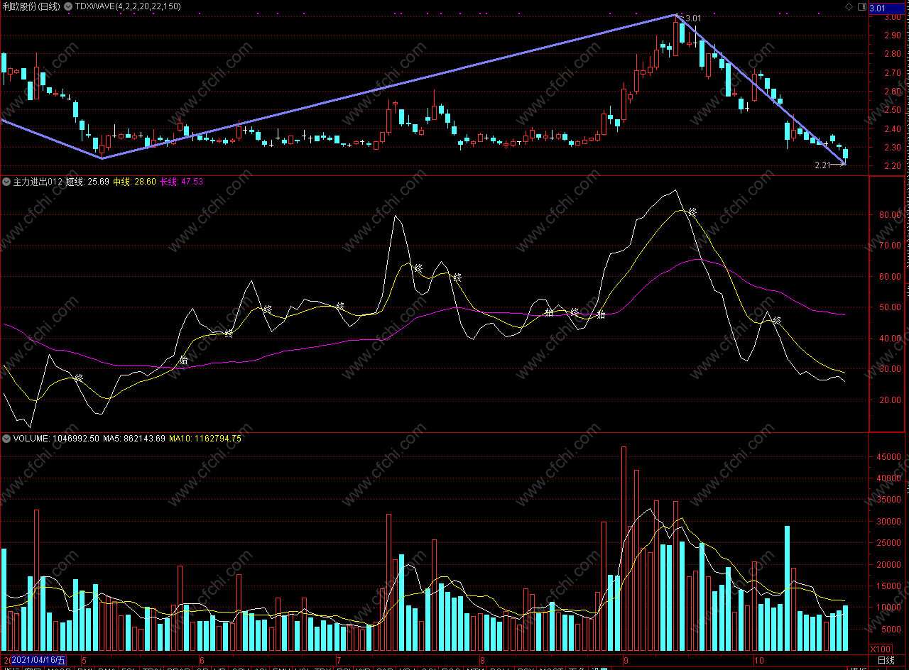 (【主力进出012】通达信趋势线副图指标公式 无未来)