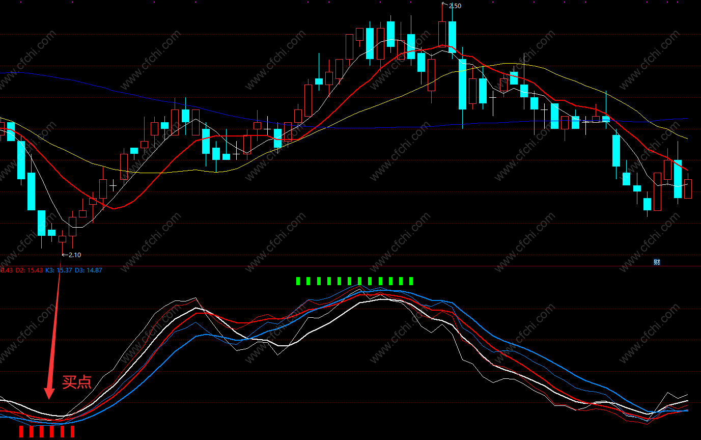 KD共振 趋势线判断提示 买卖点 通达信指标公式副图 源码 贴图
