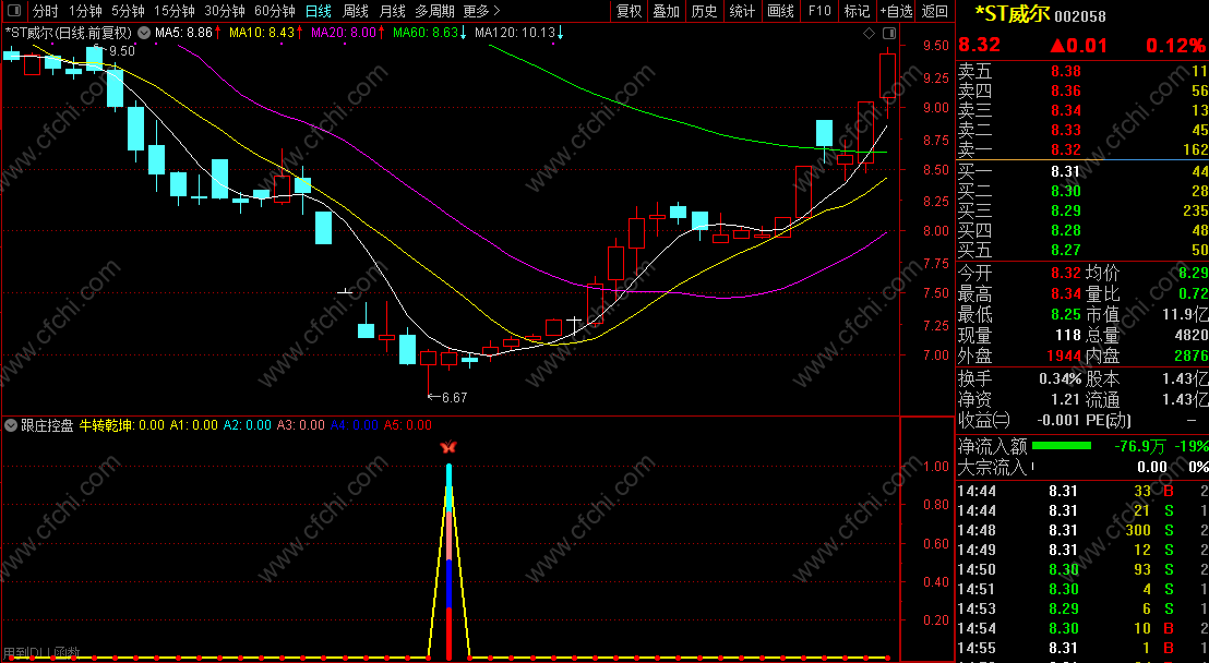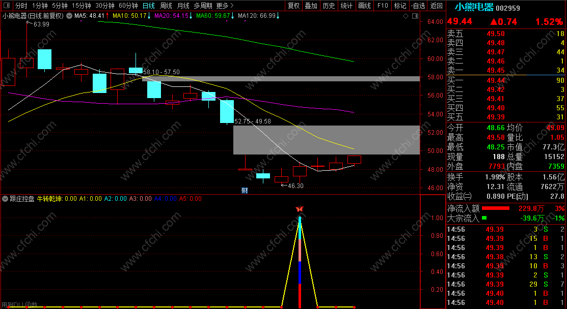 一直发布的指标均受到很多朋友的关注和支持,并收到了很多良好的建议和方法,在此再次表示感谢。下面给大家带来一款兼顾短线中线操作类型的指标——【跟庄控盘】。