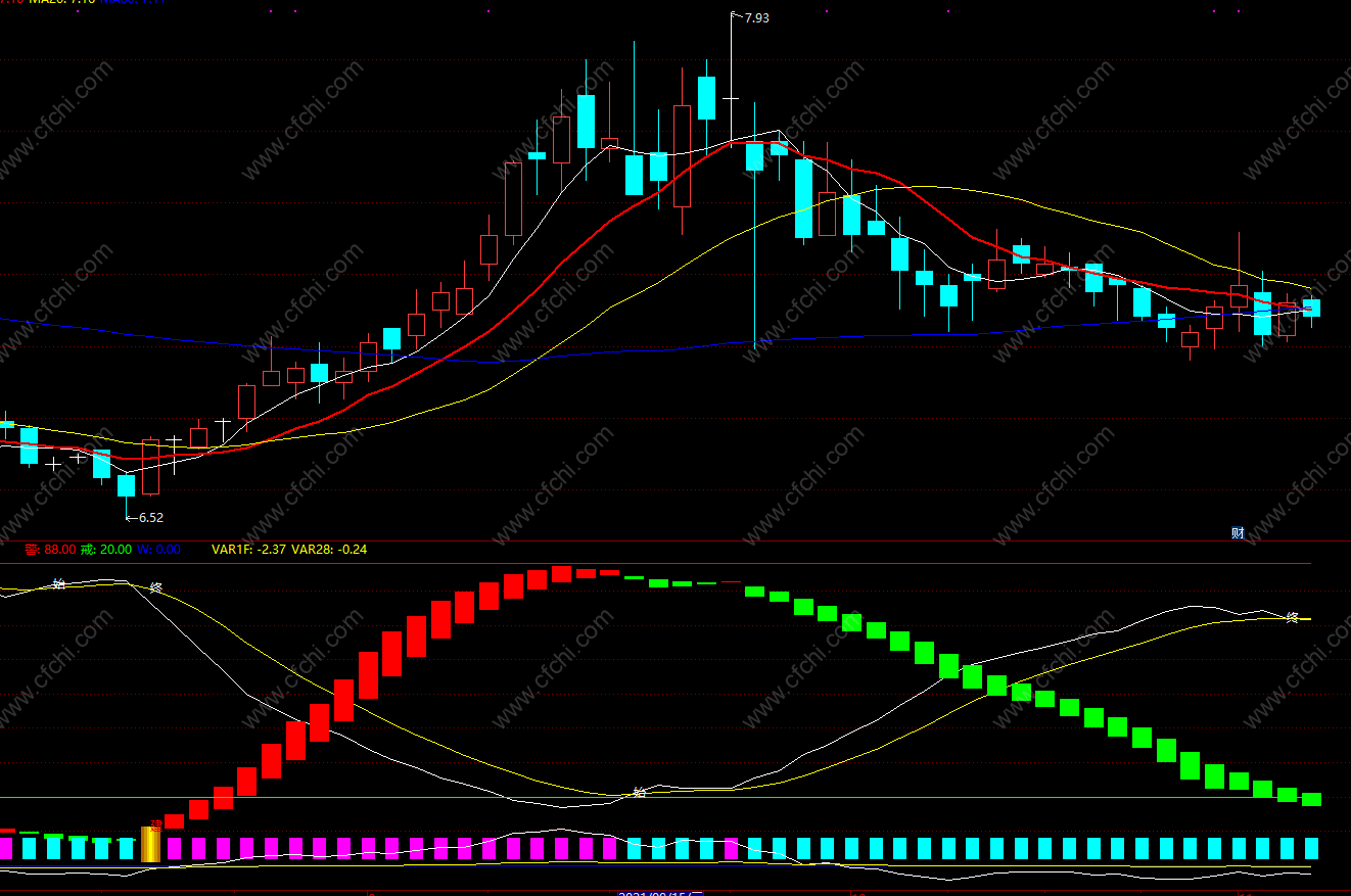 诺曼底防线:=EMA((VAR6-VAR8)/(VARA-VAR8)*100,8);