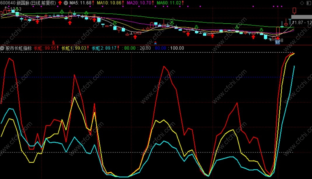 (股市长虹指标副图,判断趋势和顶底,拿住连板,把握抄底和逃顶最佳时机好指标,双十一特供)
