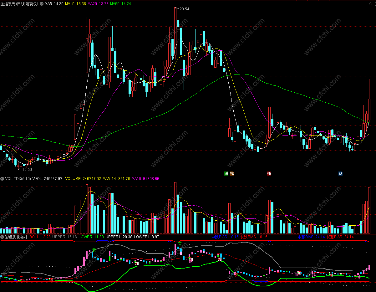 长涨BIAS:IF(BIAS13>=16,天,天+0.6),COLORRED,LINETHICK2;
