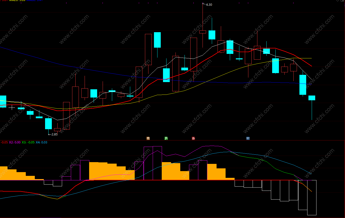 STICKLINE(MACD<0,MACD,0,4,1),COLORWHITE;