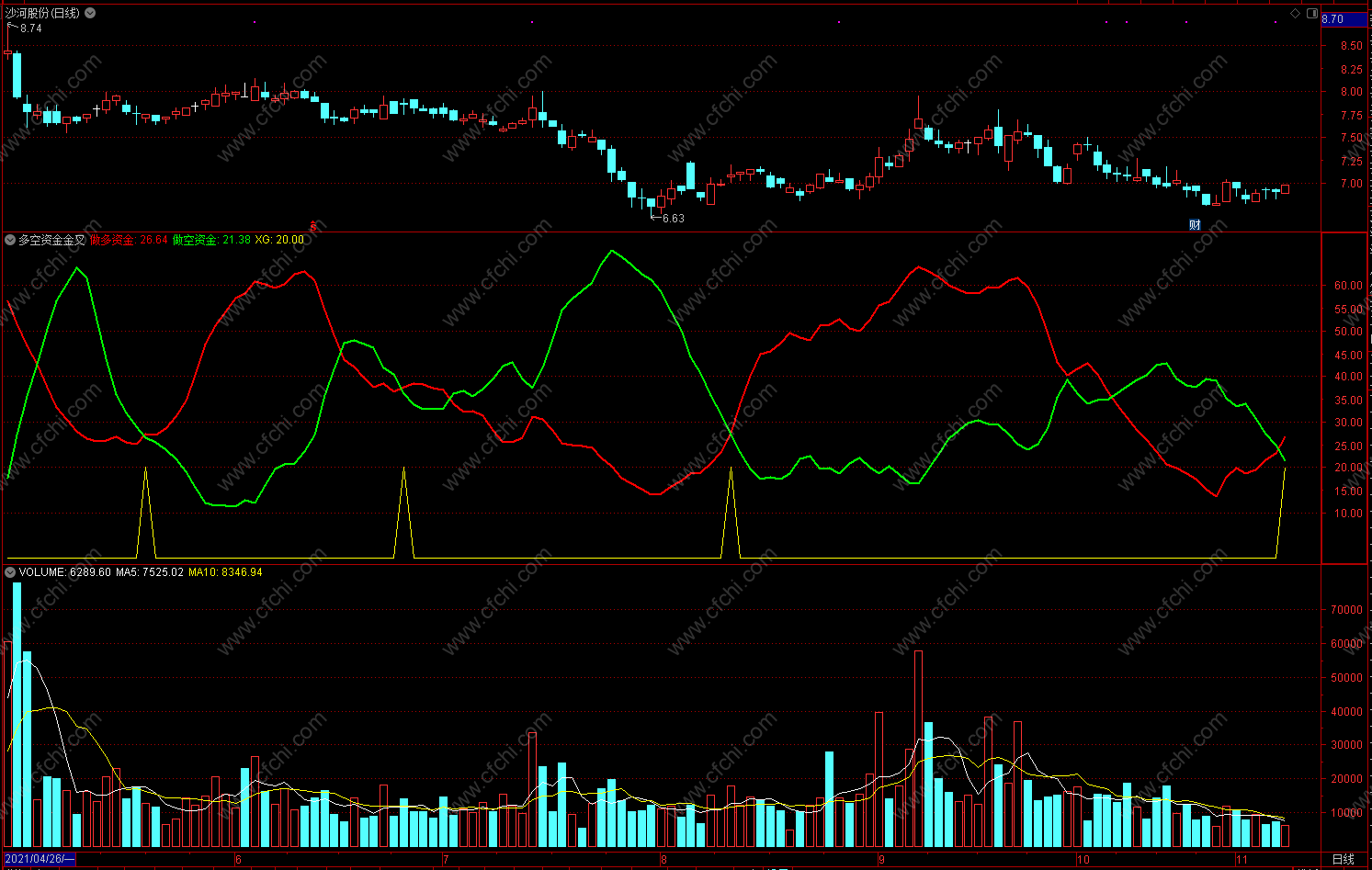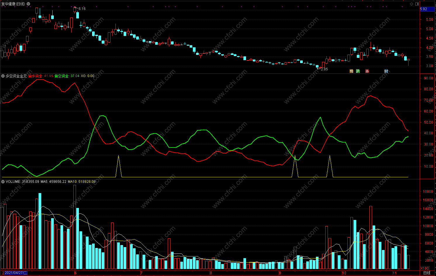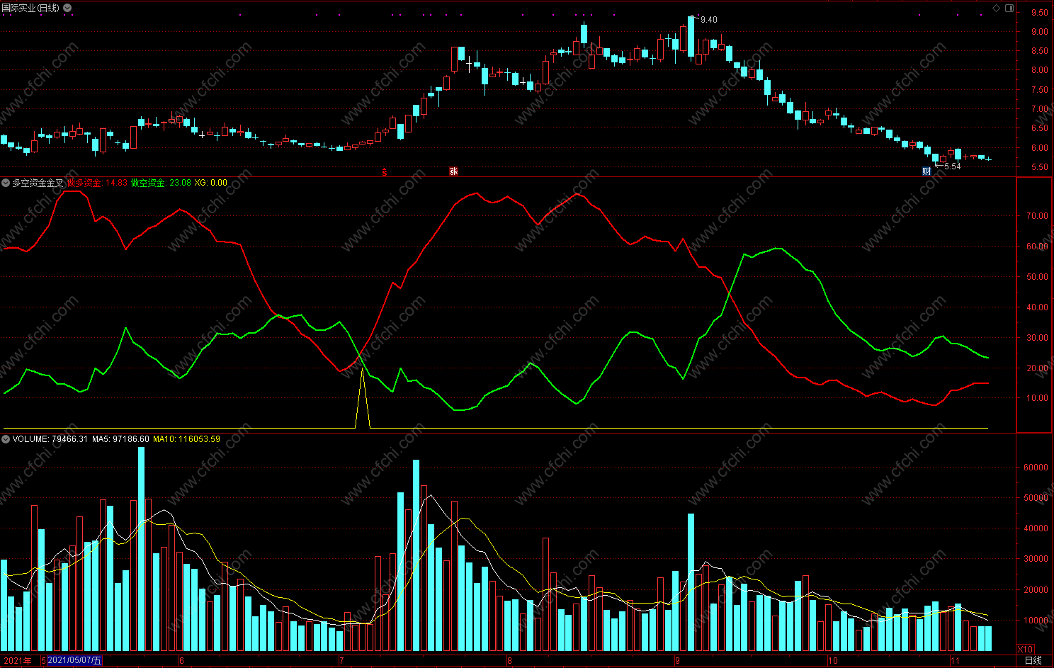 (红线上穿绿线是买入点 通达信多空资金金叉指标公式 副图 源码)