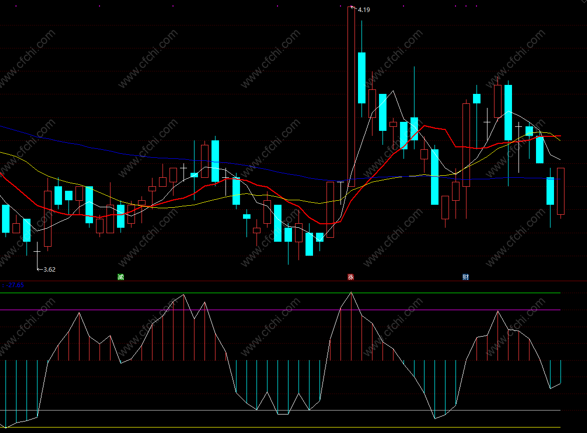 财富池指标公式网(www.cfchi.com)提醒您:指标公式是通过数学逻辑角度编写而来,仅是股票分析环节中的一个辅助工具,对股票选股效率和分析便捷上起到一定的作用,股市是具有不确定性和不可预测性的,请正常对待和使用指标公式!