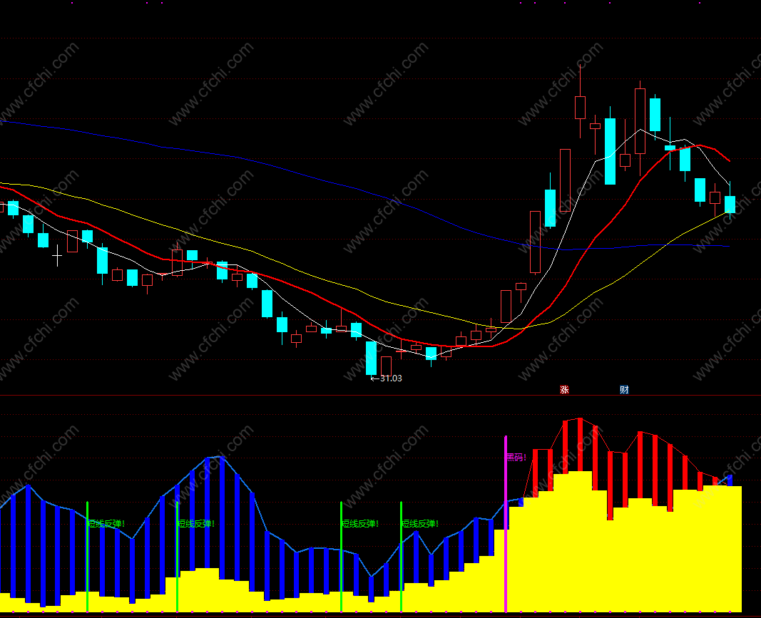 当出现 “短线反弹”会有一波上涨趋势,“黑马”字样出现可追涨,非常实用的买入指标!