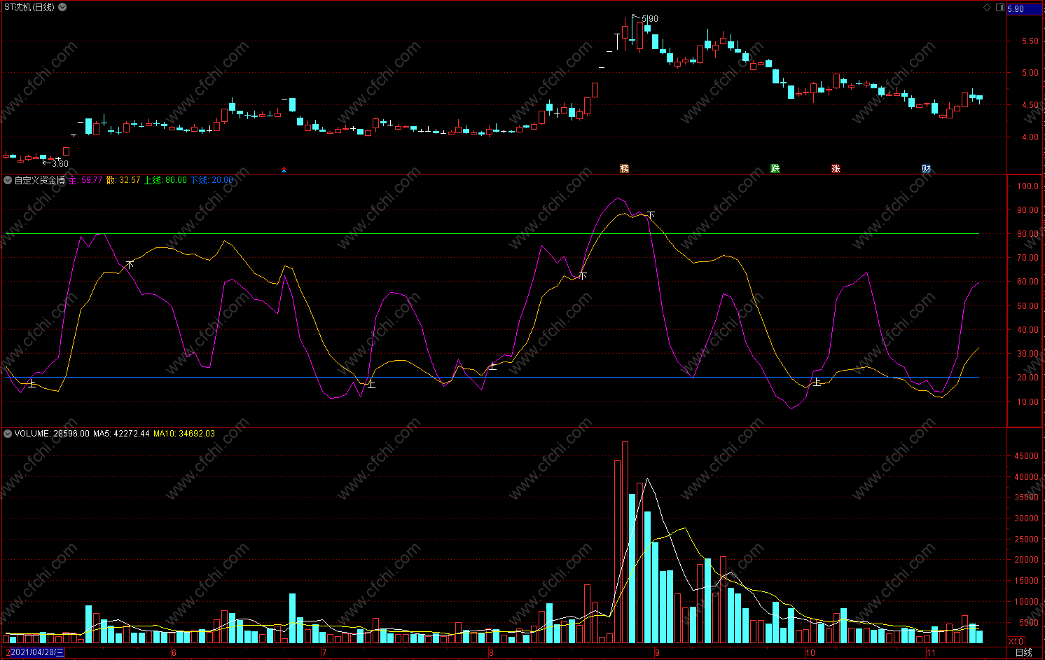 财富池指标公式网(www.cfchi.com)提醒您:指标公式是通过数学逻辑角度编写而来,仅是股票分析环节中的一个辅助工具,对股票选股效率和分析便捷上起到一定的作用,股市是具有不确定性和不可预测性的,请正常对待和使用指标公式!