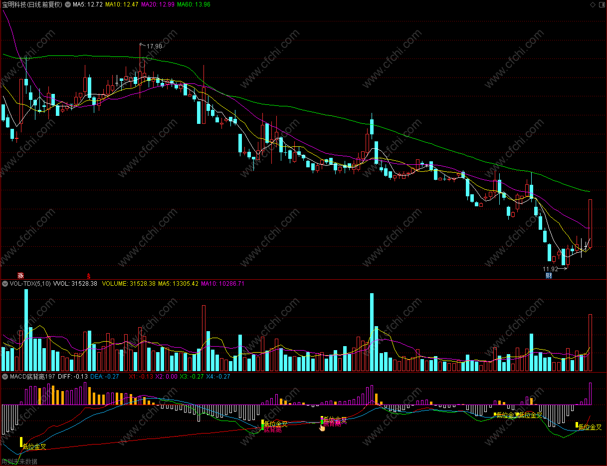 DRAWTEXT(低位金叉,DEA*0.86,' 低位金叉'),COLORYELLOW;